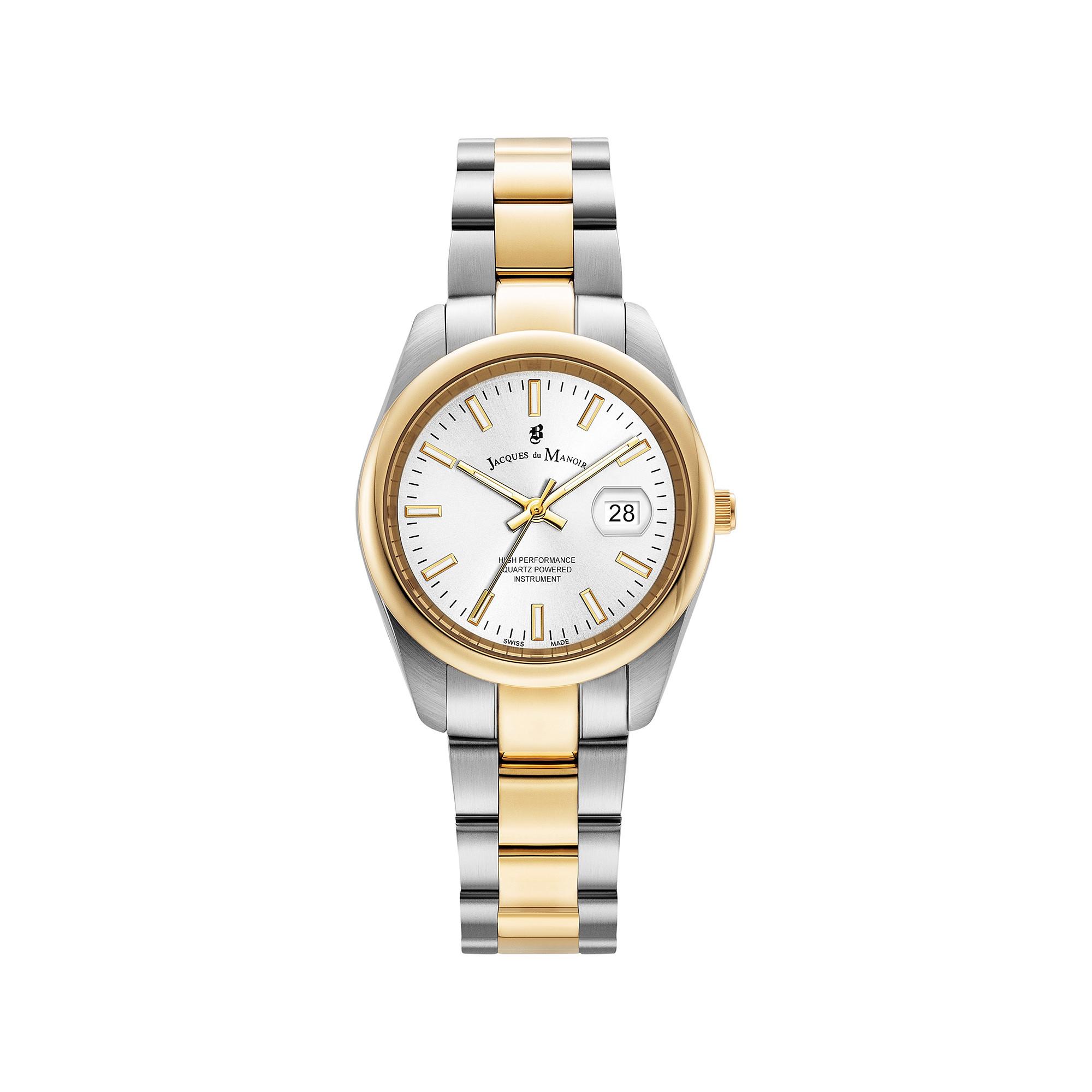 Die Jacques Du Manoir Uhr überzeugt mit einem 32-mm-Edelstahlgehäuse, einer klassischen 3-Zeiger-Anzeige mit Datum und widerstandsfähigem Mineralglas. Das Edelstahlarmband ergänzt das elegante Design, während die 5 ATM Wasserdichtigkeit zuverlässige Alltagstauglichkeit garantiert.