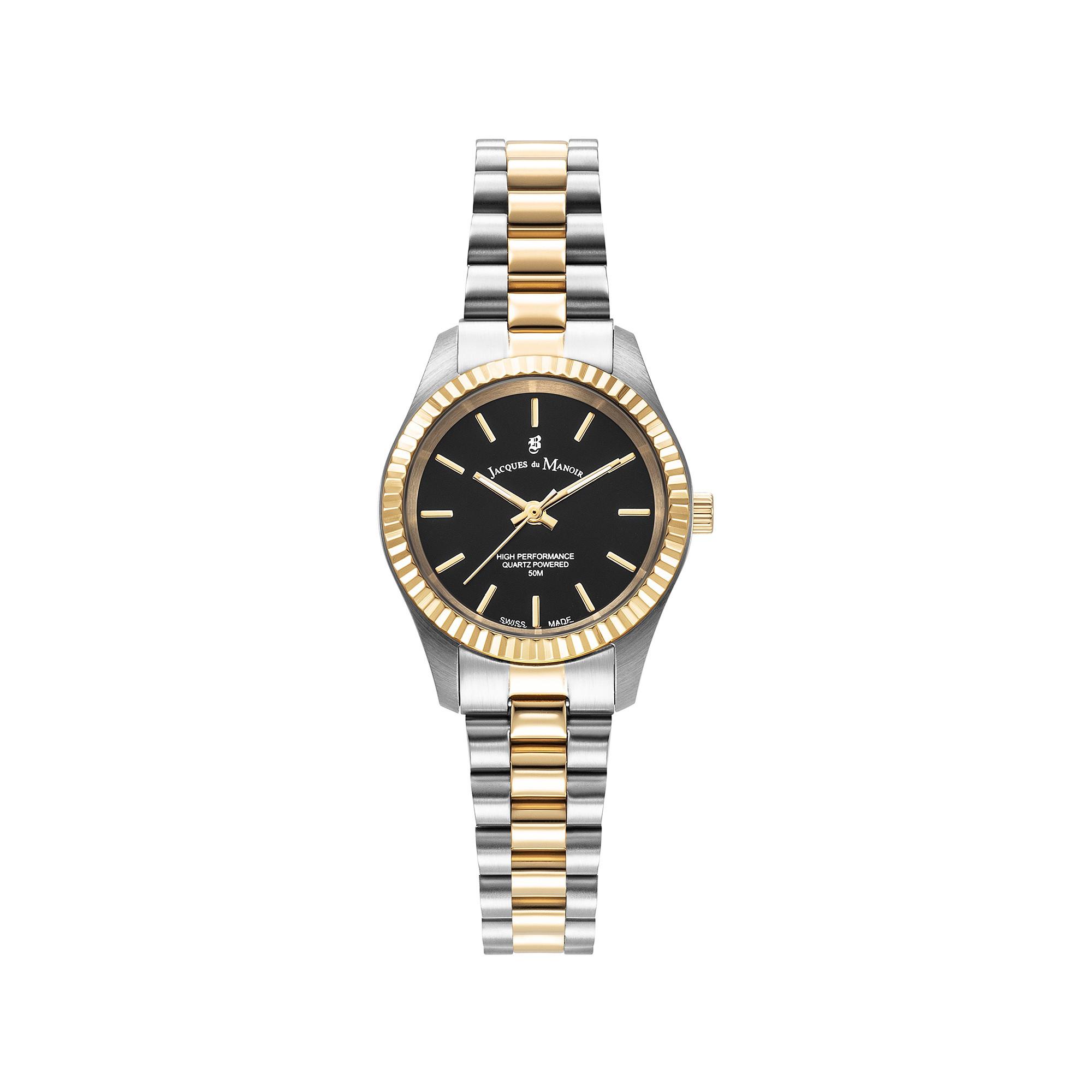 Die Jacques Du Manoir Uhr präsentiert sich mit einem 26-mm-Edelstahlgehäuse, einer klassischen 3-Zeiger-Anzeige und robustem Mineralglas. Das Edelstahlarmband verleiht ihr zeitlose Eleganz, während die 5 ATM Wasserdichtigkeit sie zum perfekten Alltagsbegleiter macht.