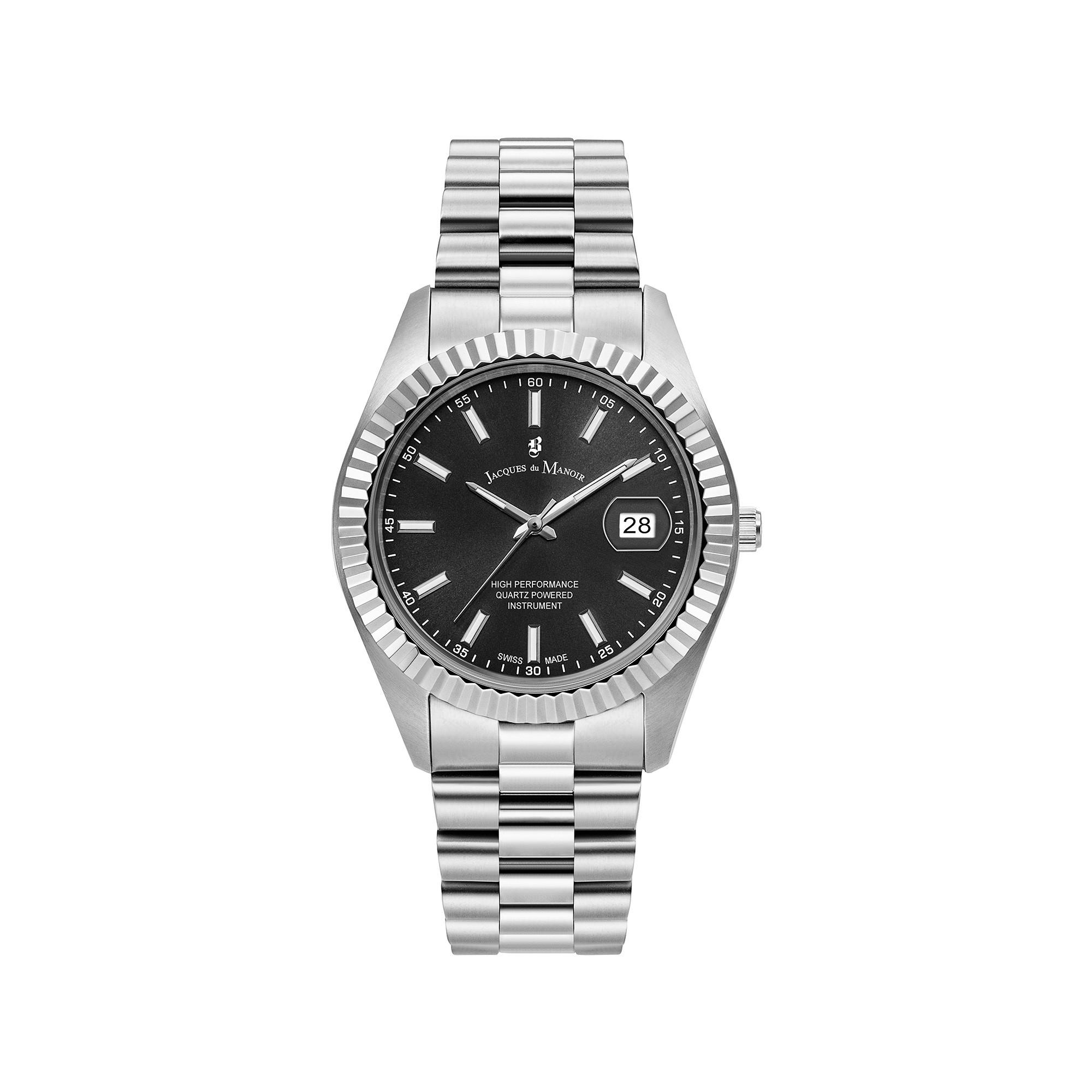 Die Jacques Du Manoir Damenuhr überzeugt mit einem Edelstahlgehäuse von 40 mm, einem klaren Zifferblatt mit Datumsanzeige und klassischer 3-Zeiger-Funktion. Das Edelstahlarmband und das Mineralglas verleihen der Uhr Eleganz und Alltagstauglichkeit, abgerundet durch eine Wasserdichtigkeit bis 5 ATM.