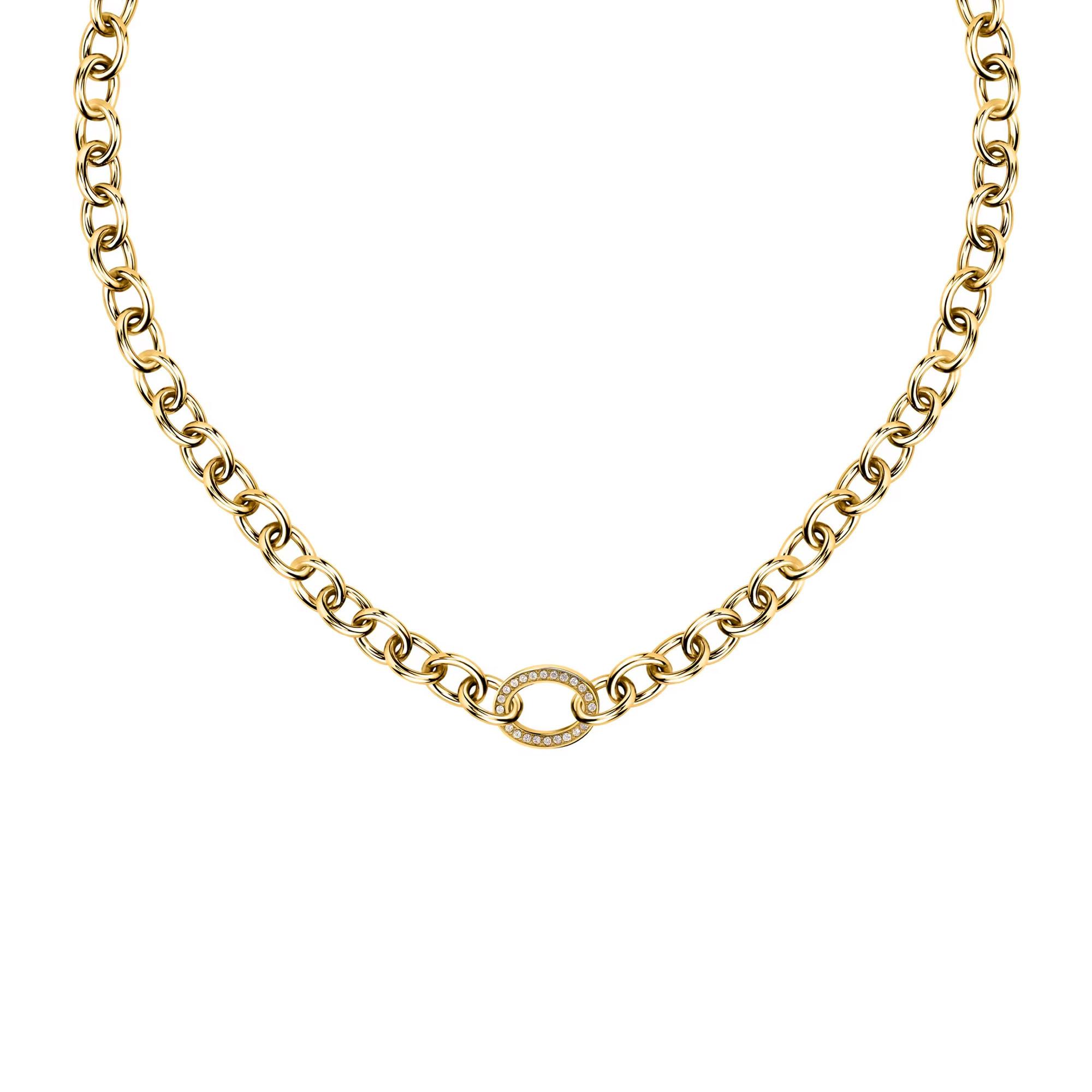 Die Halskette Intrecci von Morellato aus goldfarbenem Edelstahl ist mit funkelnden weissen Kristallen verziert und verleiht jedem Look einen eleganten Glanz. Sie wird in der originalen Morellato-Verpackung mit Echtheitszertifikat geliefert.