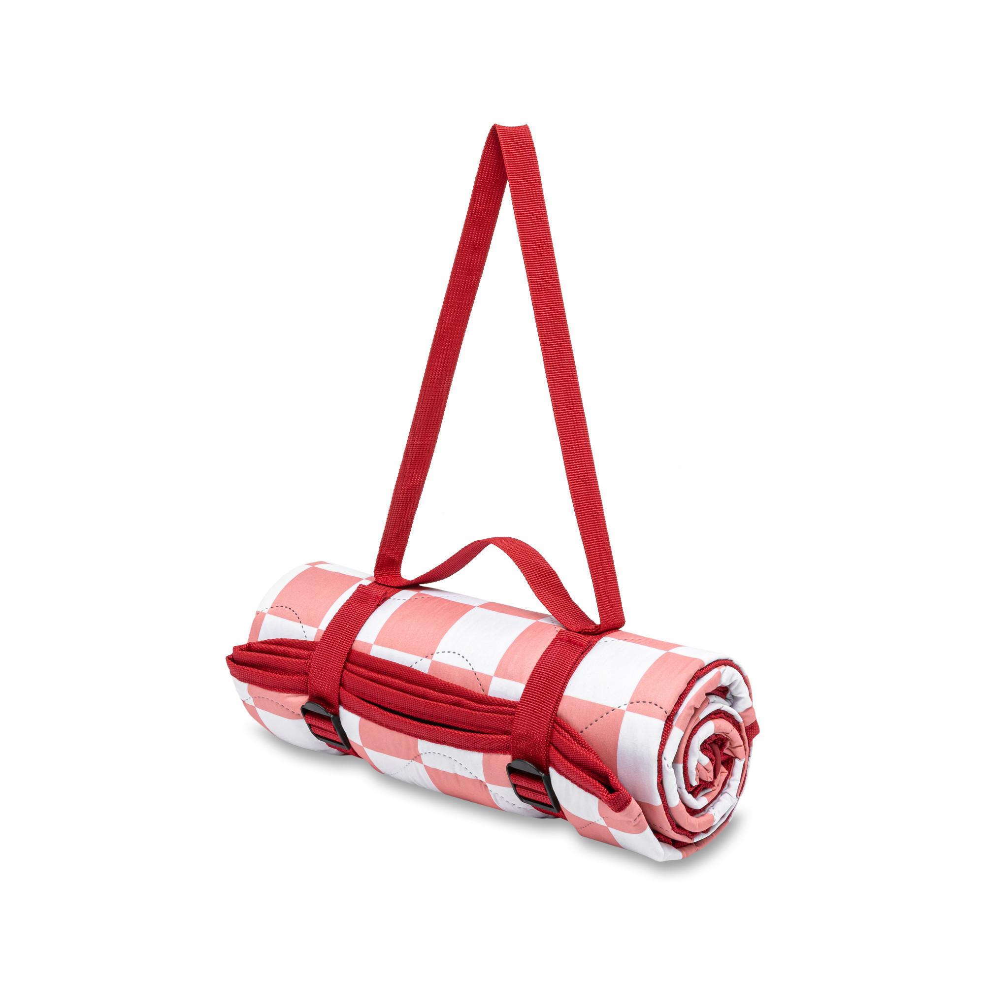 Diese Picknick-Decke von Manor mit anpassbarem Tragegurt und Tragehenkel ist auf ein bequemes Packmass komprimierbar. Die gesteppte Decke mit der wasserabweisenden Unterseite ist auf Ausflügen, im Garten und am Strand ein ideales, unkompliziertes Accessoire.