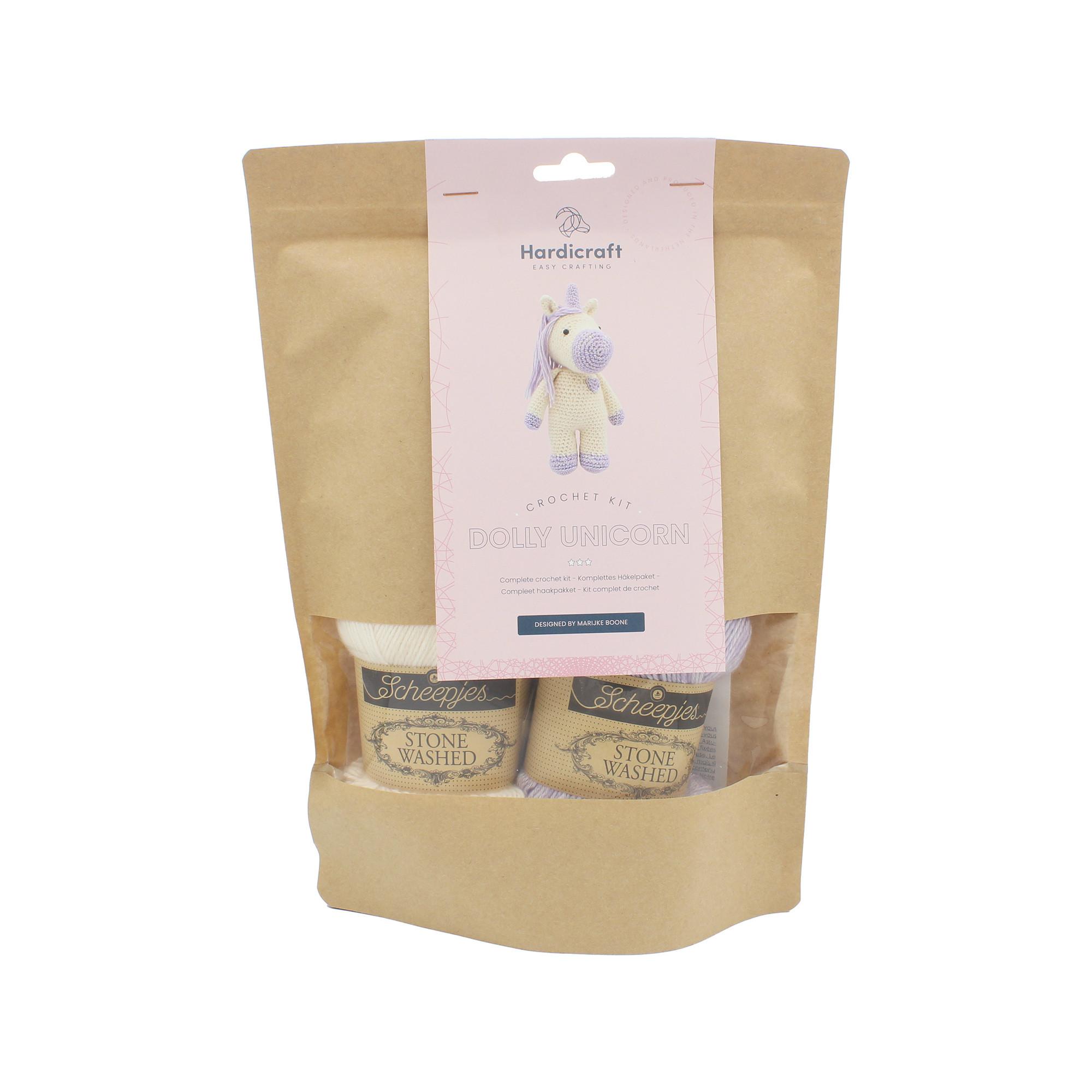 Verbreite etwas Magie mit Dolly! Dieses Einhorn ist ein tolles Geschenk für alle, die Fantasie lieben. Das Paket enthält hochwertiges meliertes Garn und alle Kurzwaren, ausser der Häkelnadel, welche du brauchst. Dolly ist etwa 20 cm gross und wird mit einer 3.0 mm Häkelnadel gehäkelt.