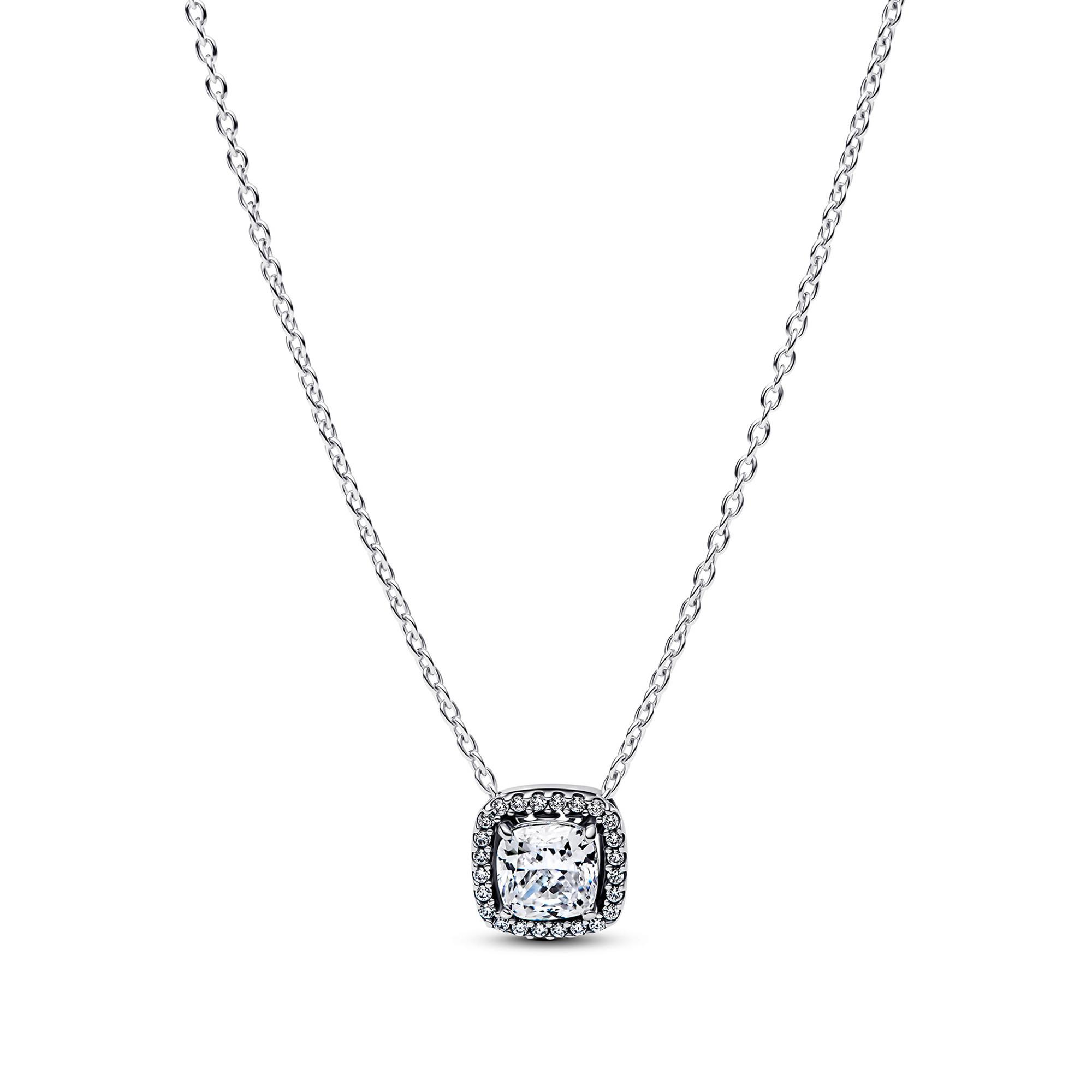 Eleganz kommt nie aus der Mode. Diese Halskette aus Sterling-Silber hat einen quadratischen Mittelstein, der von einem funkelnden Strahlenkranz umgeben ist, und wird viele Jahre lang ein Must-have in deinem Stacking sein.