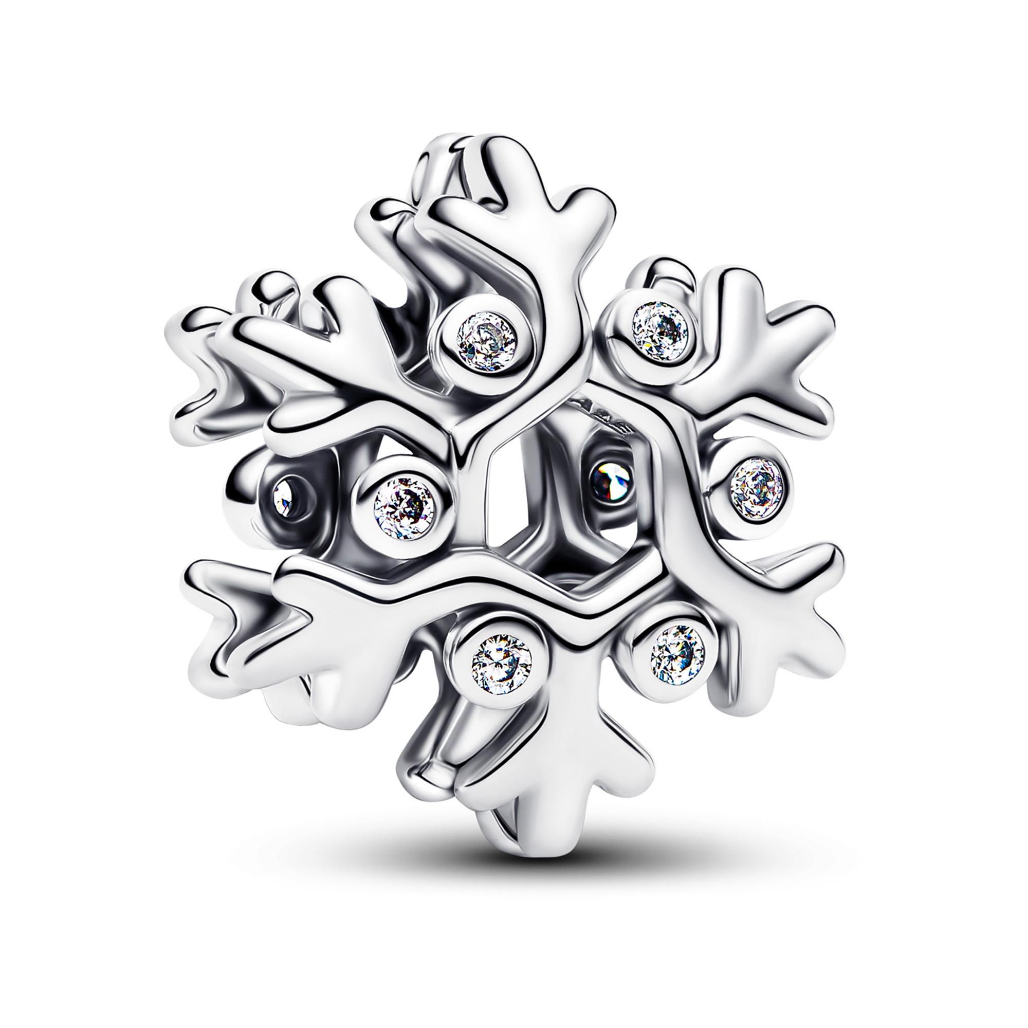 Feiere den Zauber des Winters mit dem offen gearbeiteten Schneeflocke Charm. Es ist aus Sterling-Silber, mit funkelnden Cubic Zirkonia veredelt und fängt die zarte Schönheit des Frosts ein. Trage es einzeln oder im Stacking es für ein weihnachtliches Strahlen.