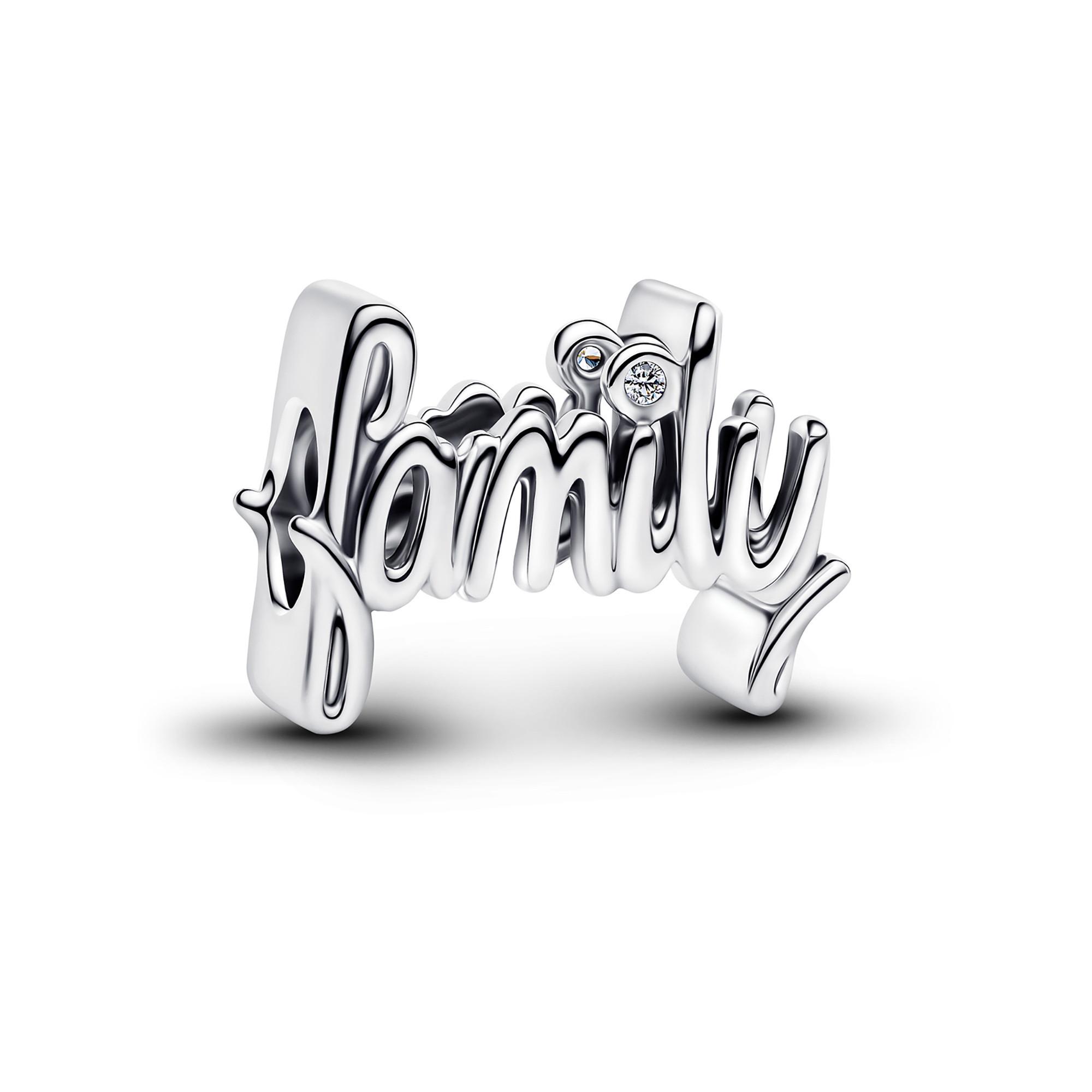 Eine strahlende Erinnerung an das, was am wichtigsten ist. Dieses Charm aus Sterling-Silber trägt den handgeschriebenen Schriftzug „family“ mit einem Punkt aus Cubic Zirkonia über dem „i“. Das fachmännisch gefertigte Schmuckstück ist eine zeitlose Hommage an das Herz jeder Geschichte.
