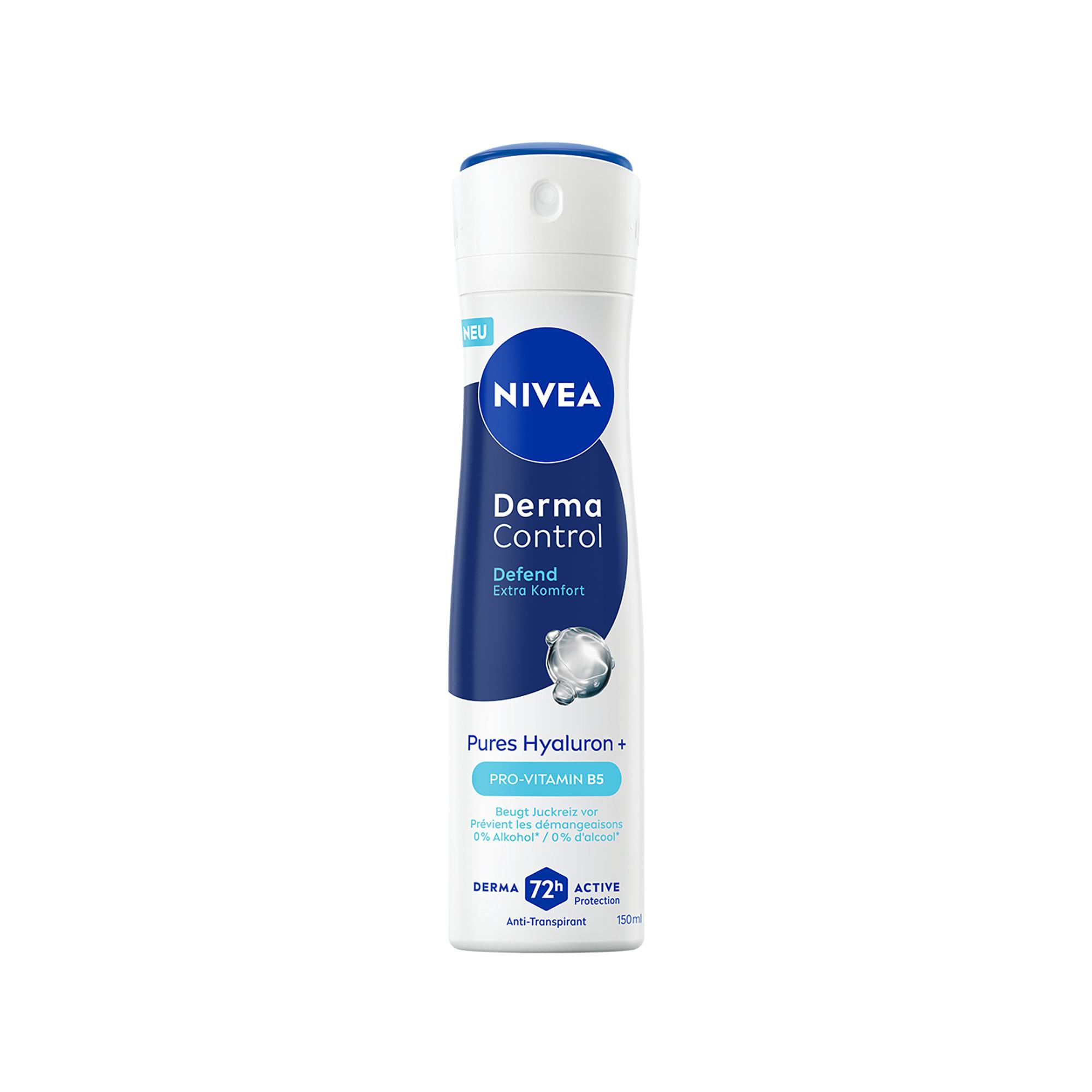 Entdecke die fortschrittliche Formel von NIVEA Derma Control Defend Deo Spray Female 150 ml, die speziell entwickelt wurde, um deine Haut unter den Achseln optimal zu pflegen und gleichzeitig unangenehme Juckreizgefühle nach der Rasur zu verhindern. Mit einer einzigartigen Kombination aus purem Hyaluron und ProVitamin B5 sorgt unser Produkt nicht nur für ein glattes Hautgefühl, sondern bietet auch einen zuverlässigen 72 Stunden Anti-Transpirant-Schutz.
