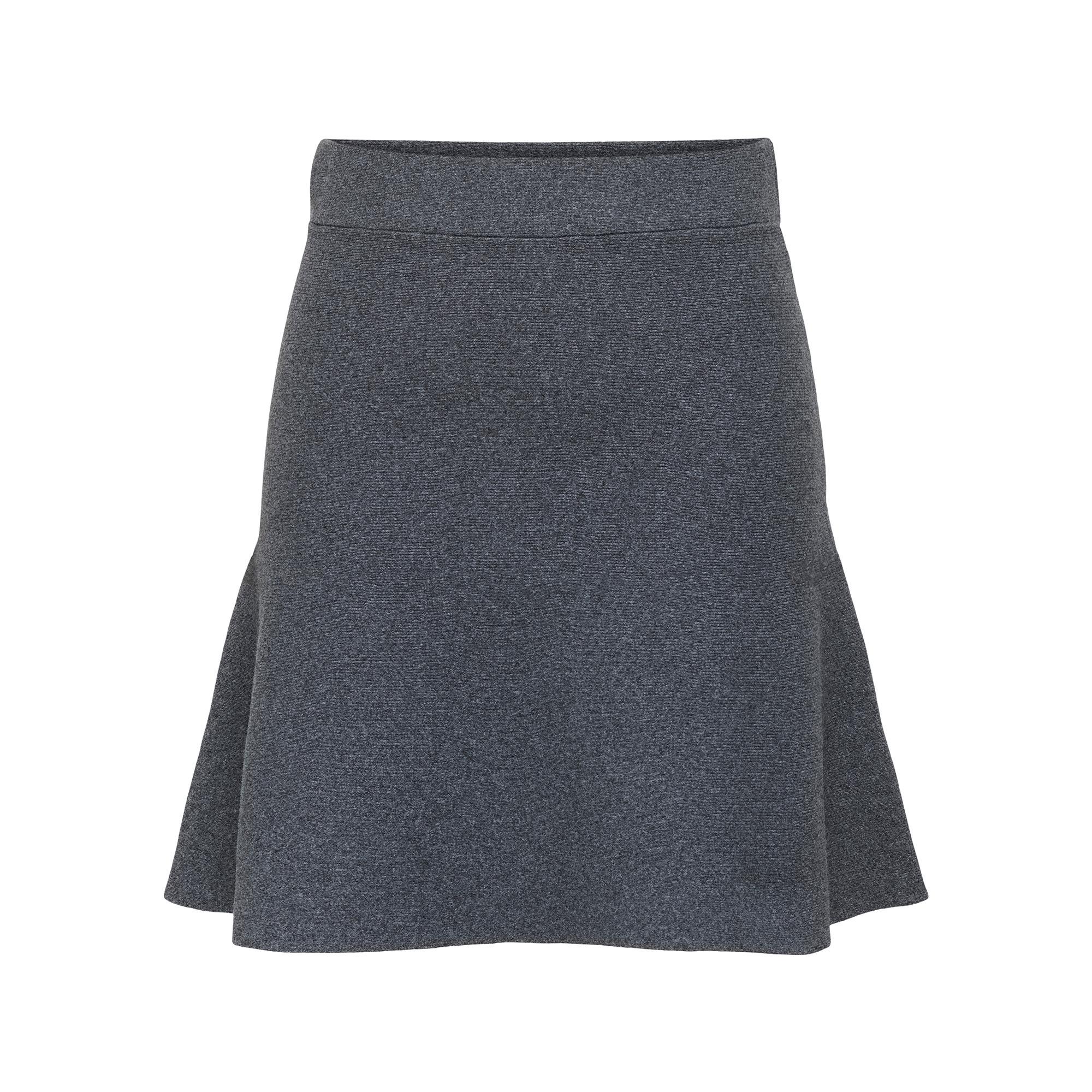Dieser kurze Strickrock besteht zu mindestens 50 % aus recyceltem Polyester und schont damit natürliche Ressourcen. Die ausgestellte Silhouette sorgt für einen femininen und modernen Look und ist für verschiedene Anlässe geeignet.