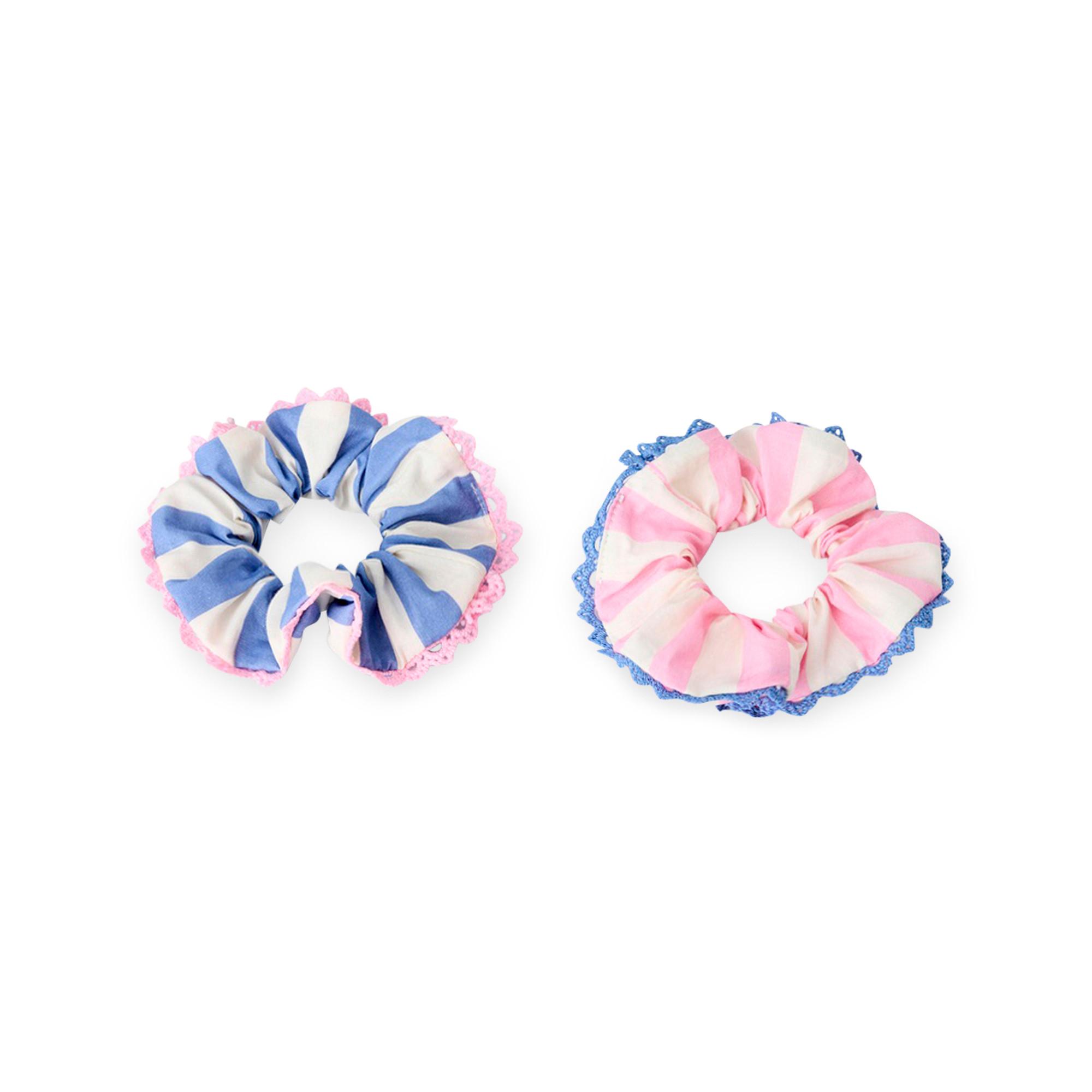 2er Pack Haargummis von Tao Kids mit verspieltem Spitzen-Besatz und farbenfrohem Streifen-Print.