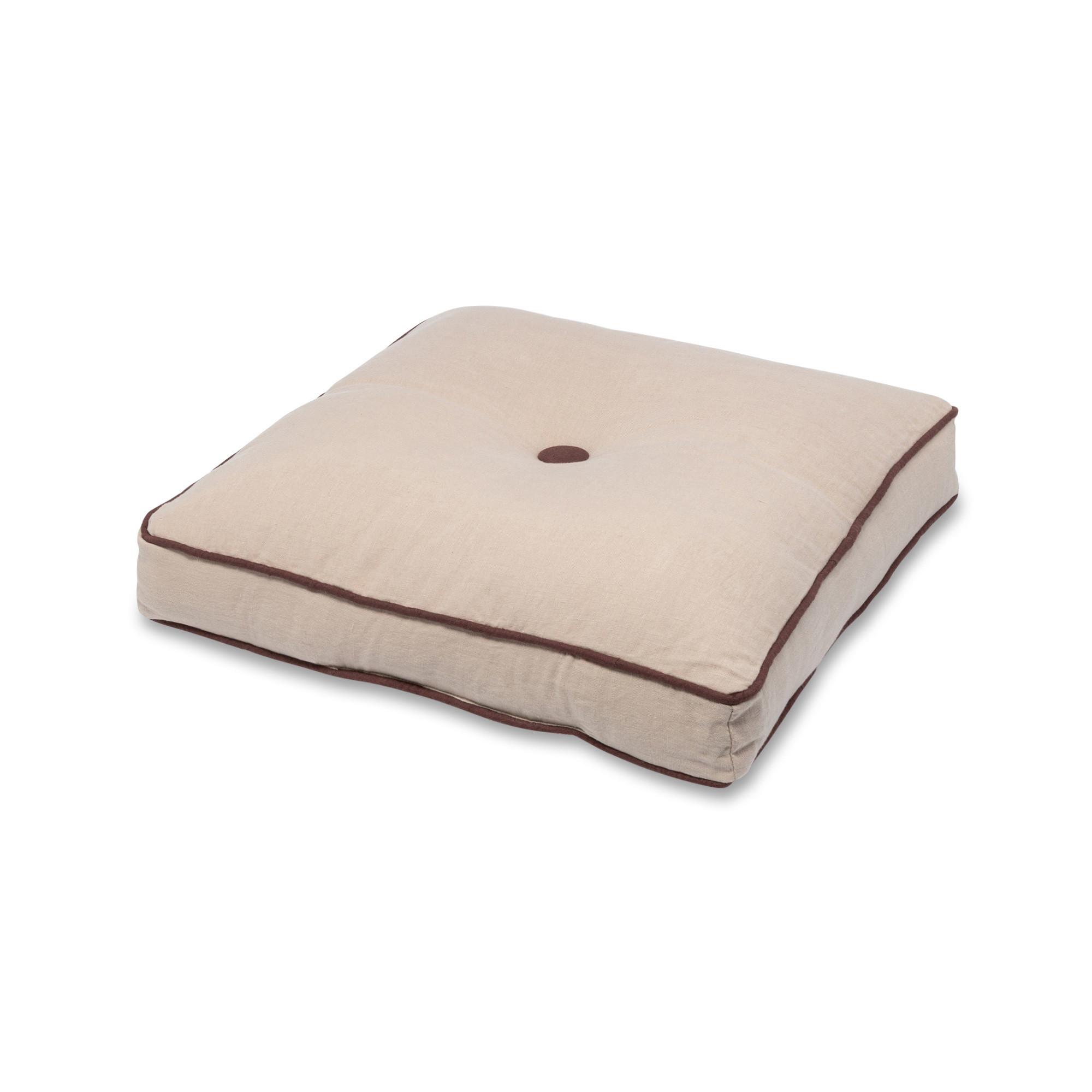 Dieses Sitzkissen von Manor ist mit kontrastfarbener Rahmennaht und Polsterknopf ein klassisches Basic eleganter Wohnkultur, hergestellt aus einem robusten Baumwolle-Leinen-Mischgewebe.