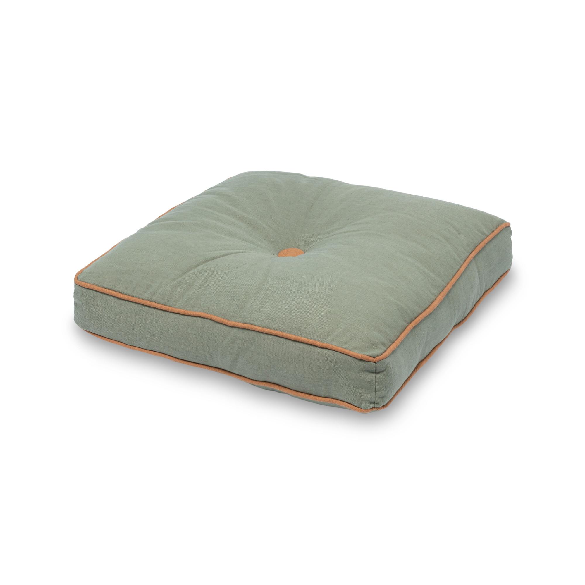 Dieses Sitzkissen von Manor ist mit kontrastfarbener Rahmennaht und Polsterknopf ein klassisches Basic eleganter Wohnkultur, hergestellt aus einem robusten Baumwolle-Leinen-Mischgewebe.