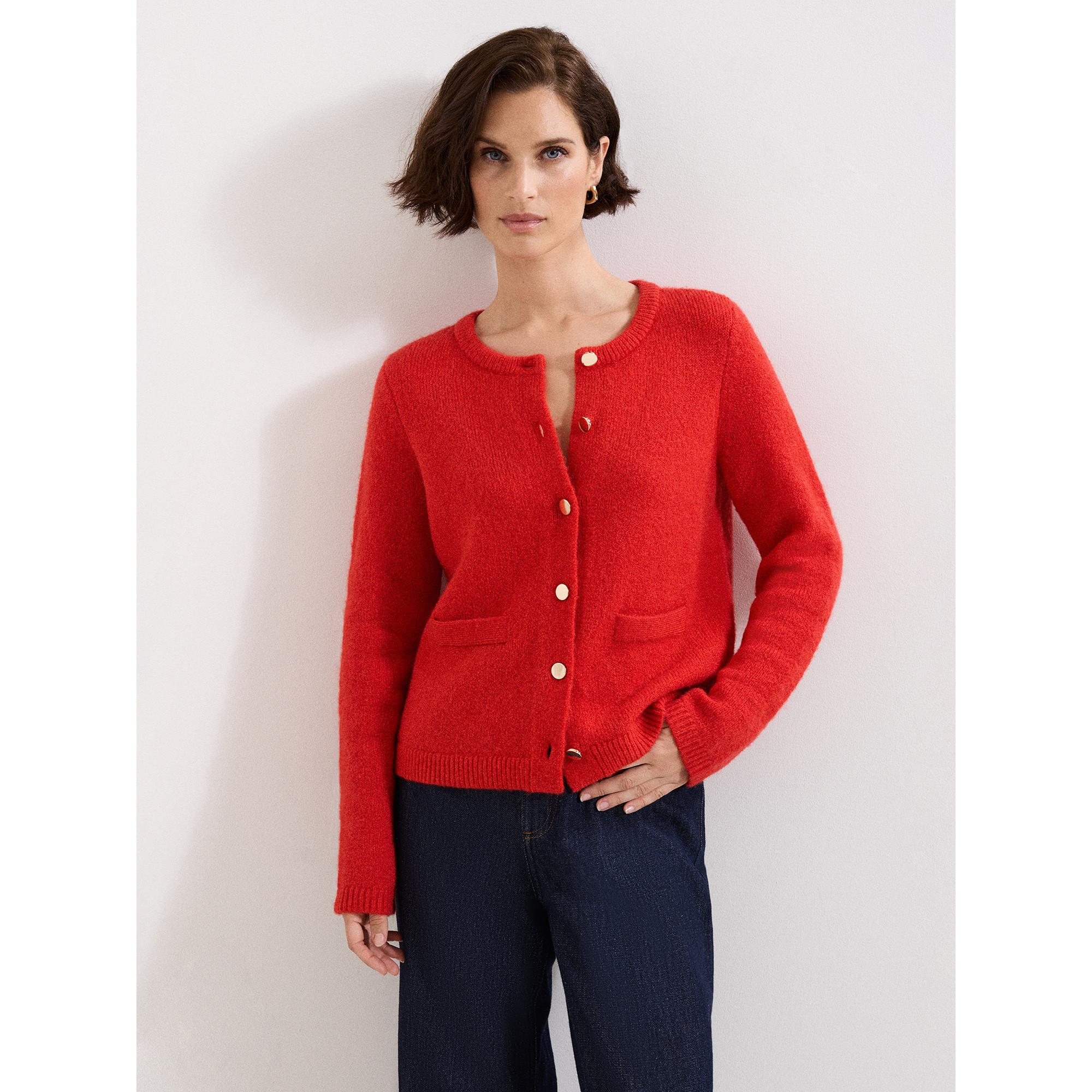 Der Jade Cardigan von Phase Eight bringt mit seinen goldfarbenen Knöpfen und dem weichen Mohair-Mix einen Hauch von Eleganz in jede Garderobe. Die reguläre Passform und die angenehme Länge machen ihn zum idealen Begleiter für kühlere Tage. Ob solo getragen oder als letzte Schicht – dieser Cardigan sorgt für stilvolle Wärme.