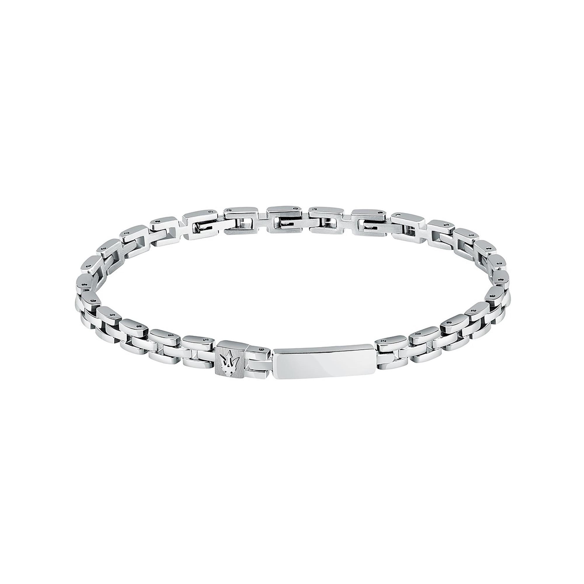 Dieses Herrenarmband von Maserati besticht durch cleanes, sportlich-elegantes Design aus silberfarbenem Edelstahl. Die flexibel gestalteten Glieder, der Klappverschluss und der markante Dreizack machen das Accessoire zu einem stilvollen Begleiter für Freizeit und Business.