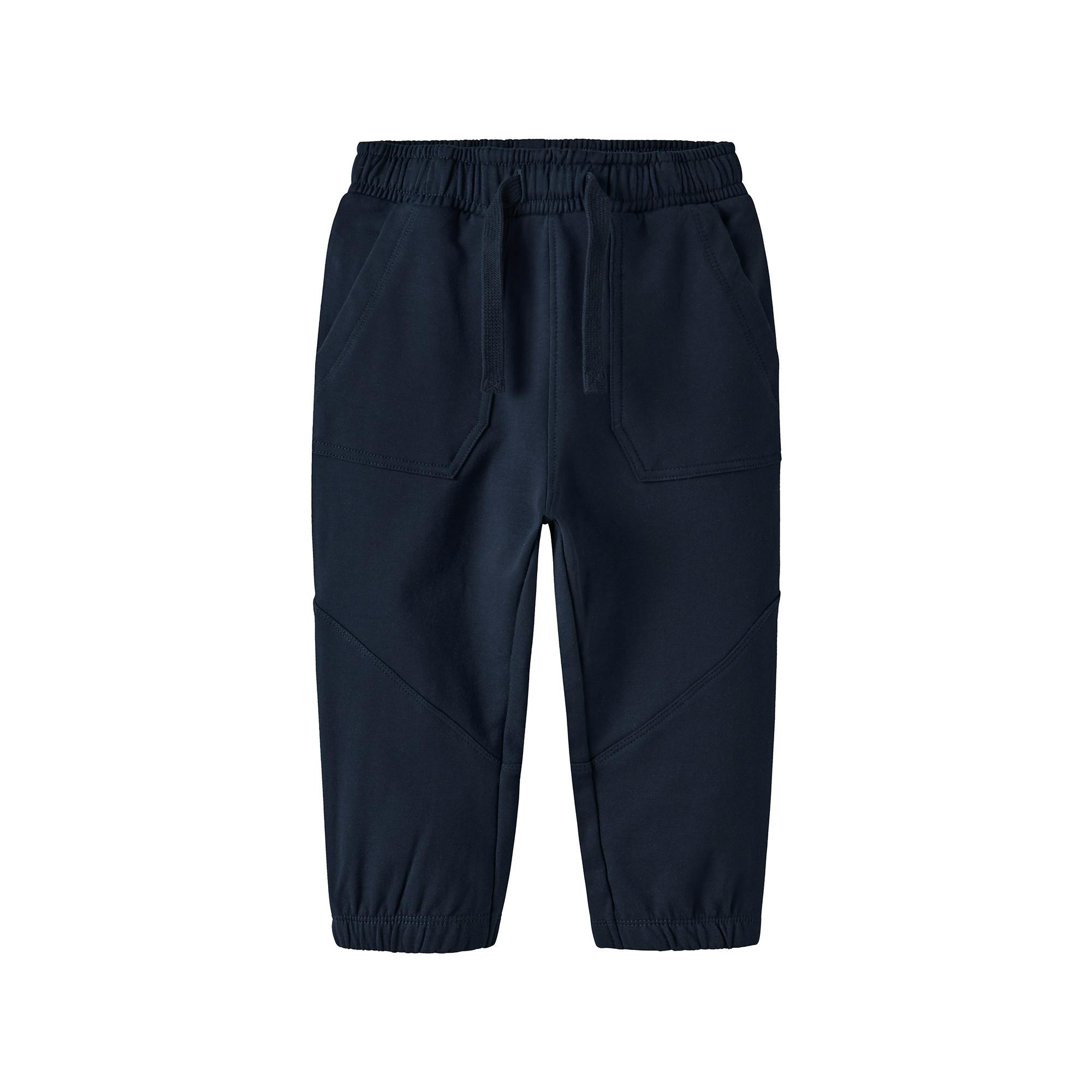 Diese trendige Kinderhose aus weichem, angerautem Sweatstoff sorgt für ein angenehmes Tragegefühl und einen coolen Alltagslook. Mit Fronttaschen, Bindeverschluss und verstellbarem Bund ist sie bequem und praktisch zugleich.