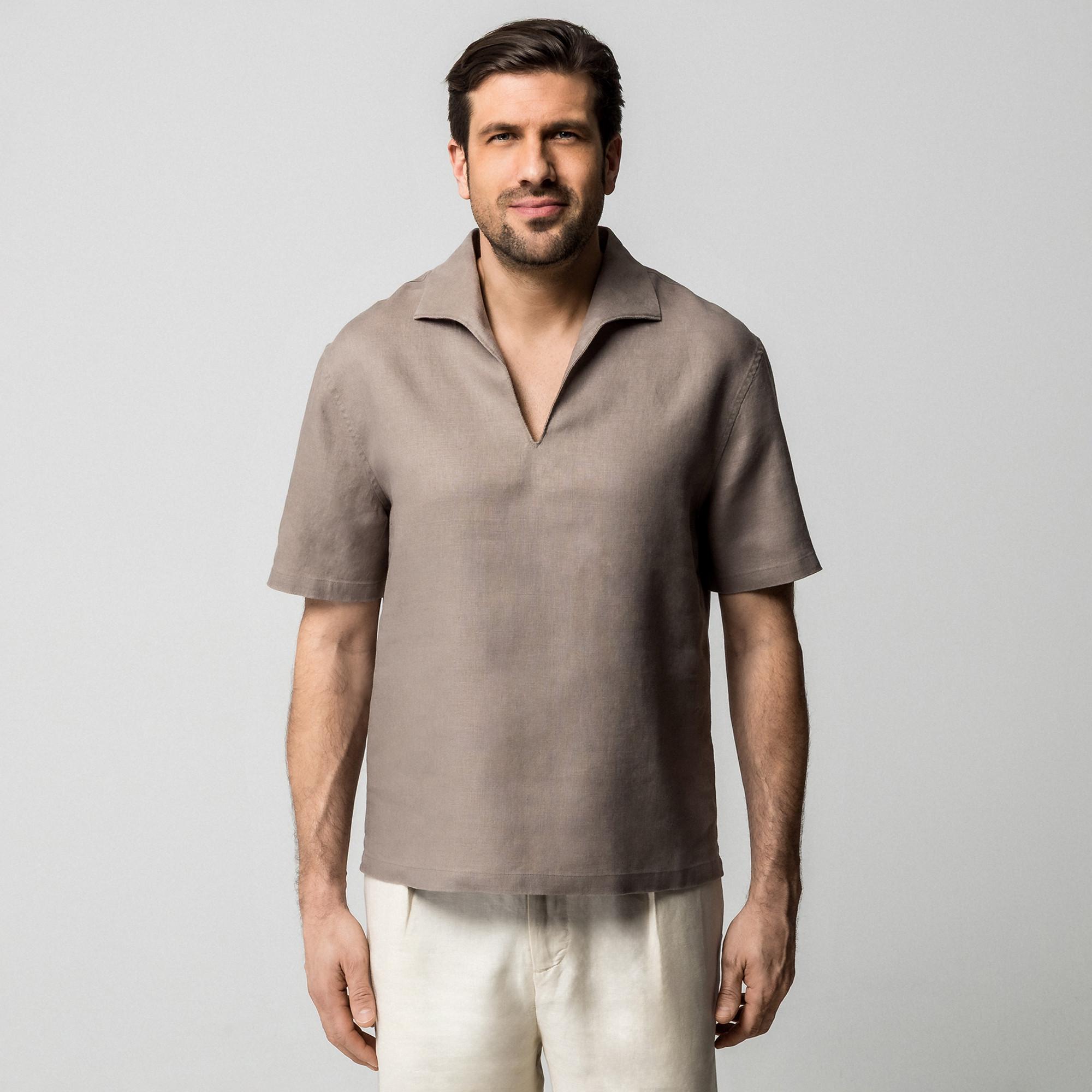 Dieses Kurzarmhemd bietet einen entspannten und stilvollen Look. Es verfügt über einen klassischen Kentkragen und einen V-Ausschnitt, der einen bequemen Sitz für verschiedene Anlässe bietet.