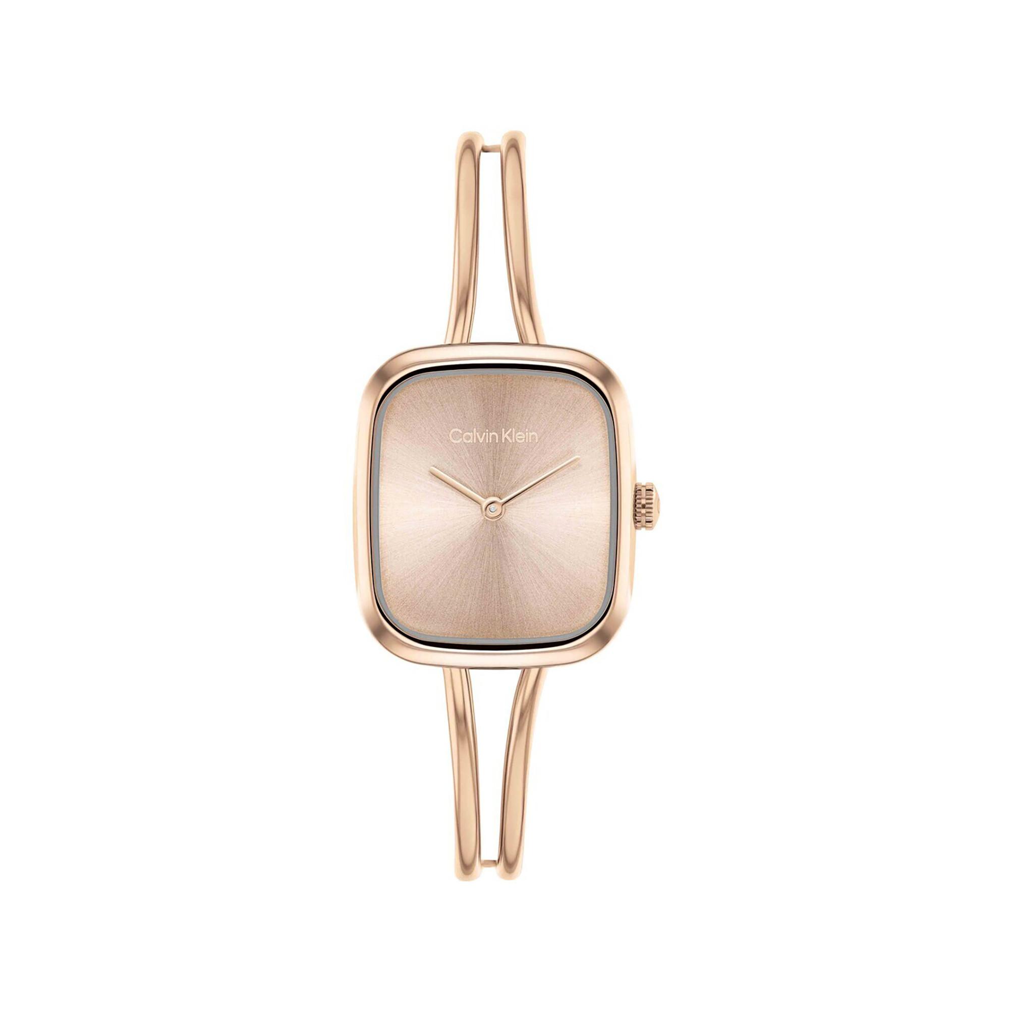 Die Calvin Klein CK Adore Damenuhr verbindet elegantes design mit hochwertiger verarbeitung aus roségoldfarbenem edelstahl/pvd. Das eckige gehäuse mit 20.8 mm durchmesser und 6.5 mm hoehe sowie das roségoldfarbene ziffernblatt mit kratzfestem mineralglas sorgen fuer einen modernen look und hohen tragekomfort.