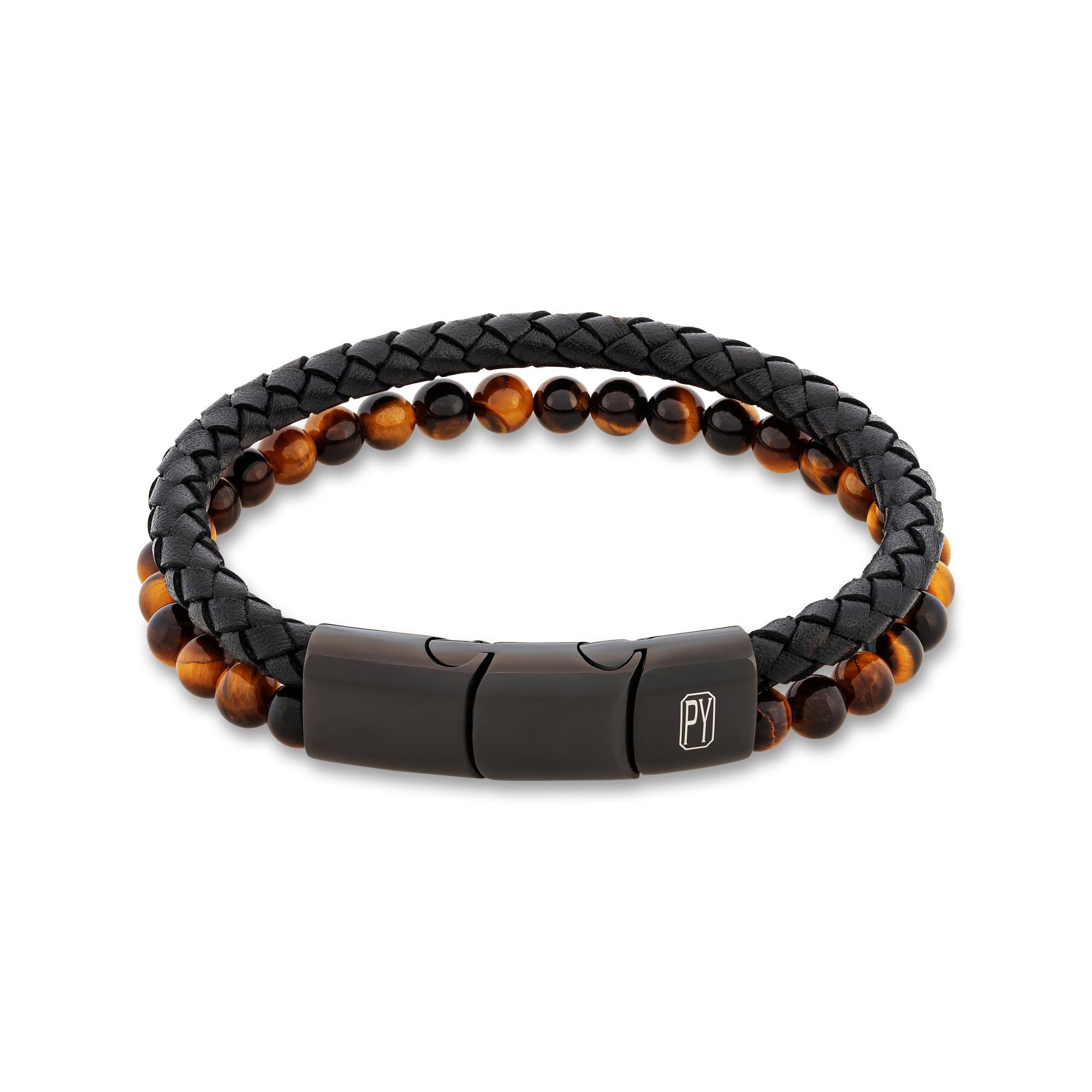 Dieses Armband von Personality besteht aus einem geflochtenen Lederband, das mit einem Perlenarmband verbunden ist – ein solides Schmuckwerk mit markantem Stil.