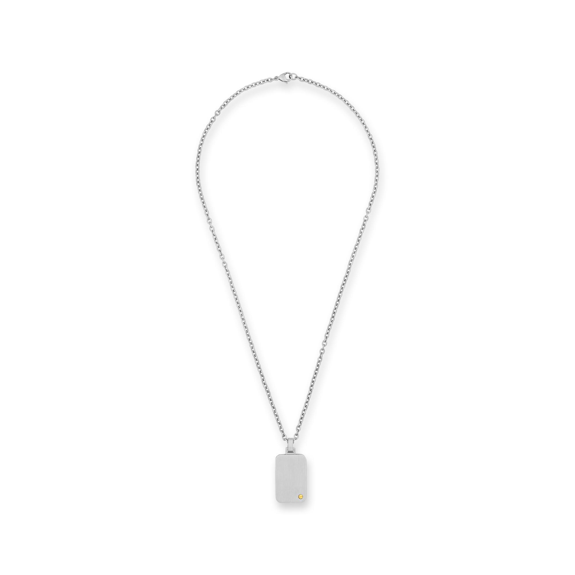 Diese Halskette von Personality aus gebürstetem Edelstahl ist ein markantes Schmuckstück mit urbanem Design. Die Gliederkette hat einen Karabinerverschluss und einen frei beweglichen Anhänger.