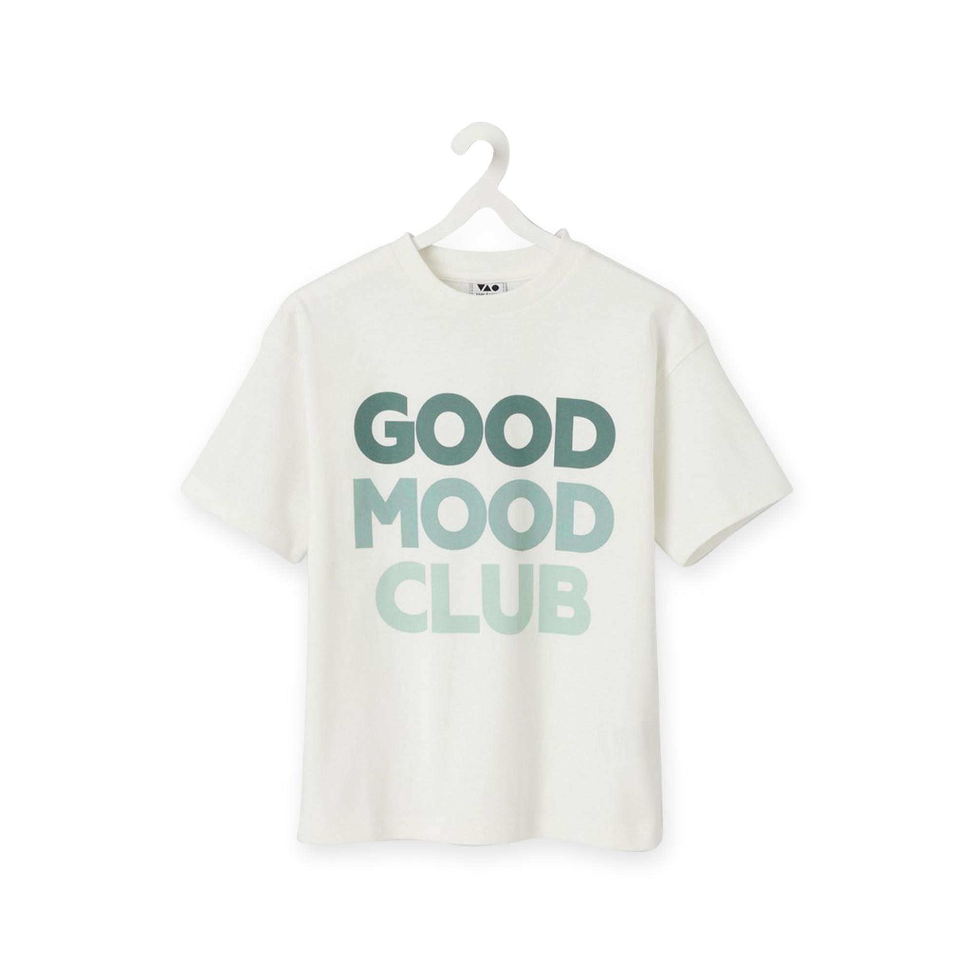 Das T-Shirt von Tao Kids ist ein kurzärmeliges Oberteil mit klassischem Rundhalsausschnitt und geradem Schnitt. Der Print mit dem Schriftzug „Good Mood Club“ auf der Vorderseite setzt einen grafischen Akzent, während der weiche Jersey-Stoff ein angenehmes Tragegefühl und gute Alltagstauglichkeit bietet.