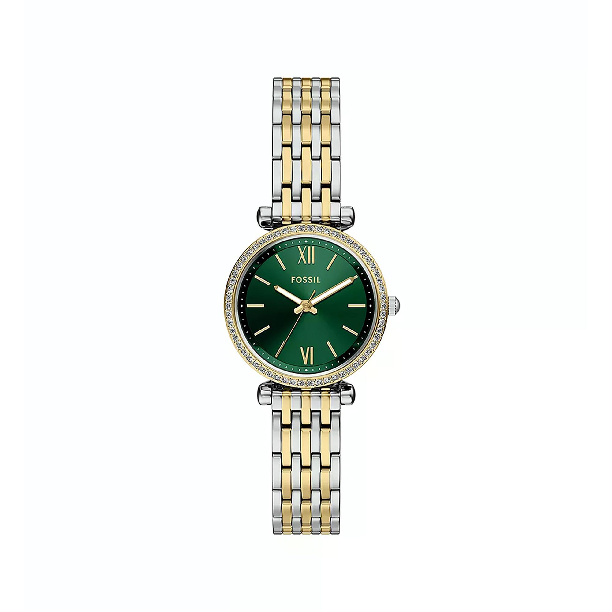 Diese zweifarbige Uhr vereint ein gold- und silberfarbenes Edelstahlband mit einem runden, polierten Gehäuse und setzt elegante Akzente an jedem Handgelenk. Das grüne Sunray-Zifferblatt mit 3-Zeiger-Layout sorgt für klare Ablesbarkeit, während die Faltschliesse mit Druckknöpfen eine sichere, verstellbare Passform garantiert.