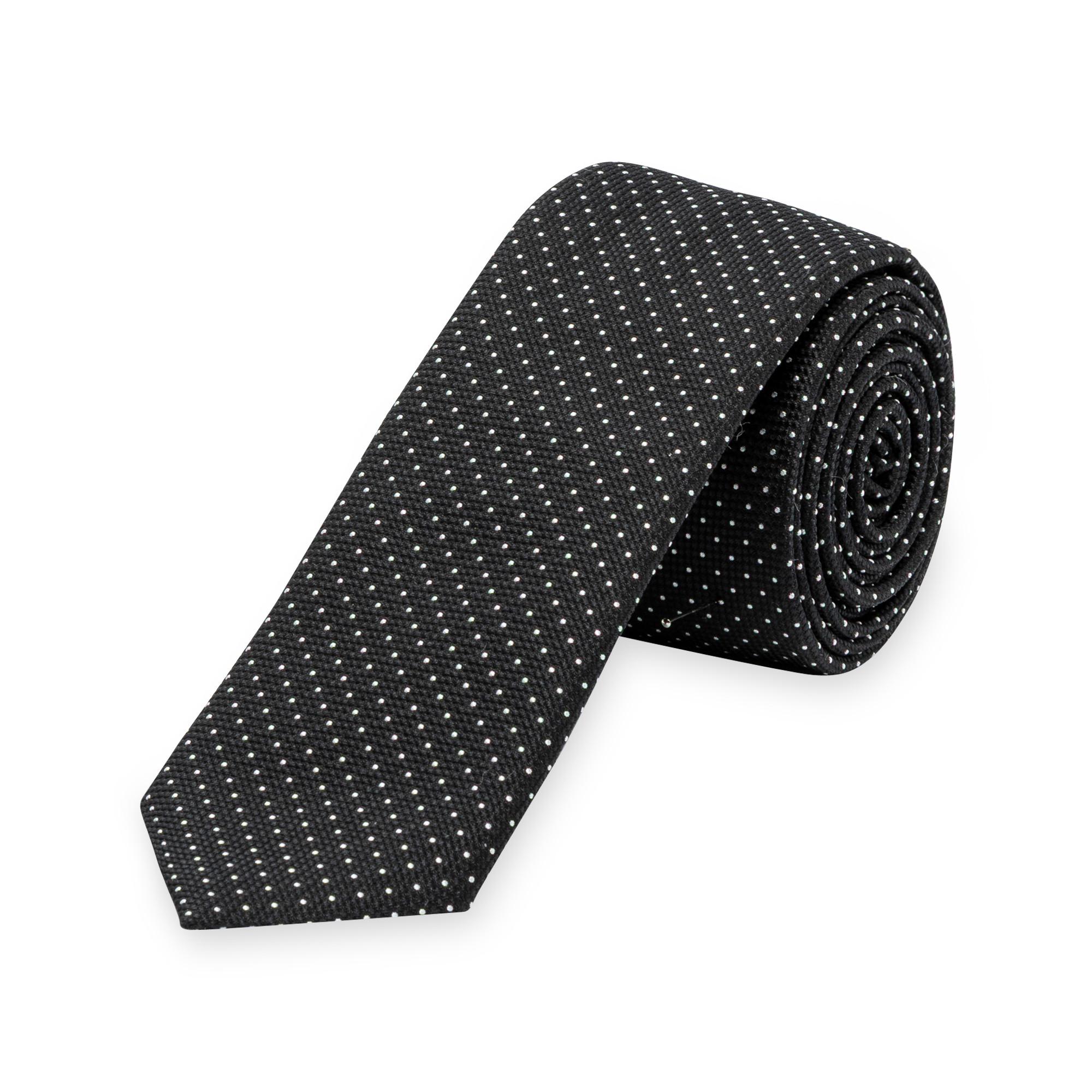 Diese vielseitig kombinierbare Krawatte hat eine Breite von 6,0 Zentimetern. Das in Italien gefertigte Accessoire aus einem Seiden-Mix ist mit filigranen Jacquard-Punkten versehen und verleiht jedem formellen oder geschäftlichen Outfit eine raffinierte Note.