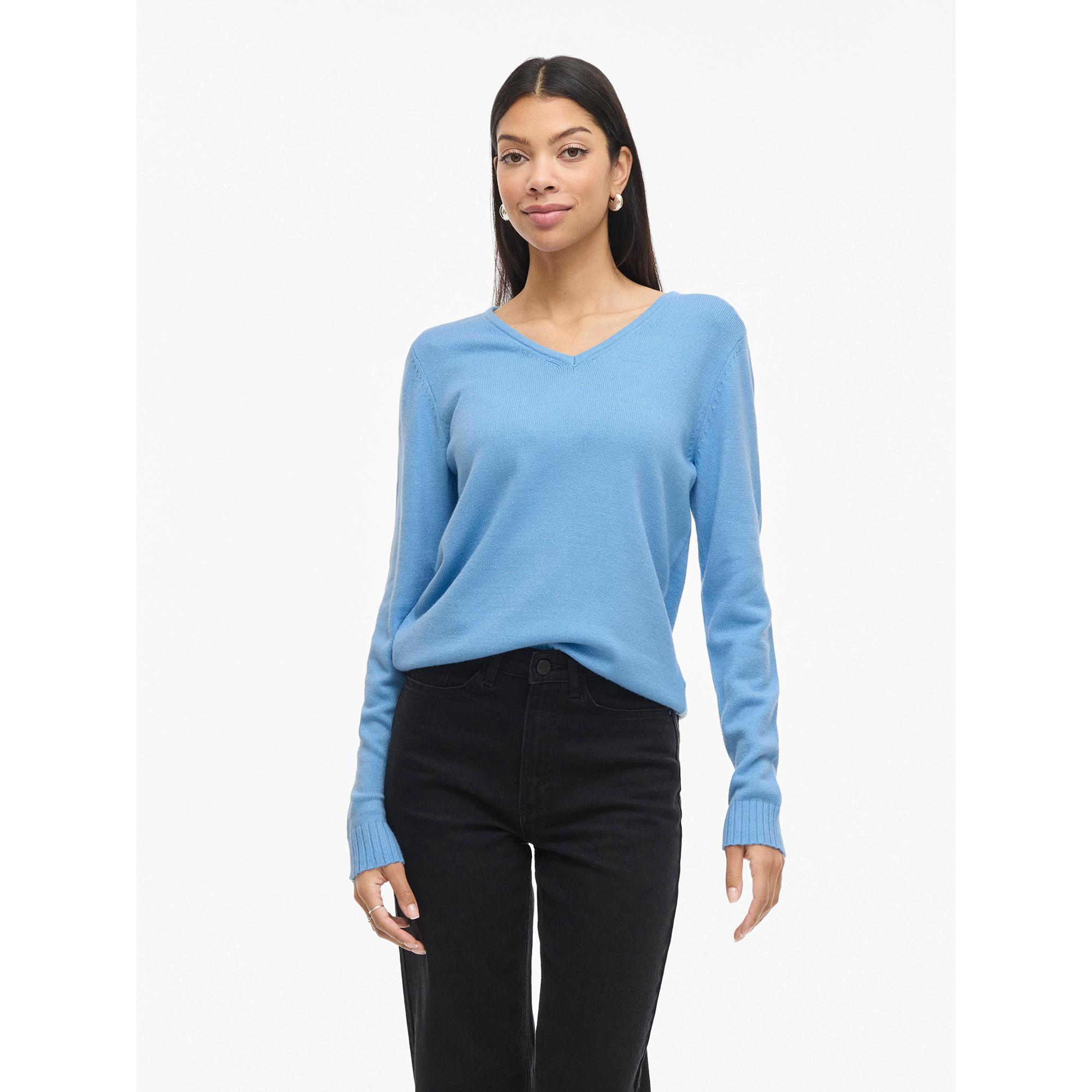 Dieser Pullover von Vila überzeugt mit einem klassischen V-Ausschnitt und langen Ärmeln. Die Rippstrickdetails sorgen für eine stilvolle Optik.