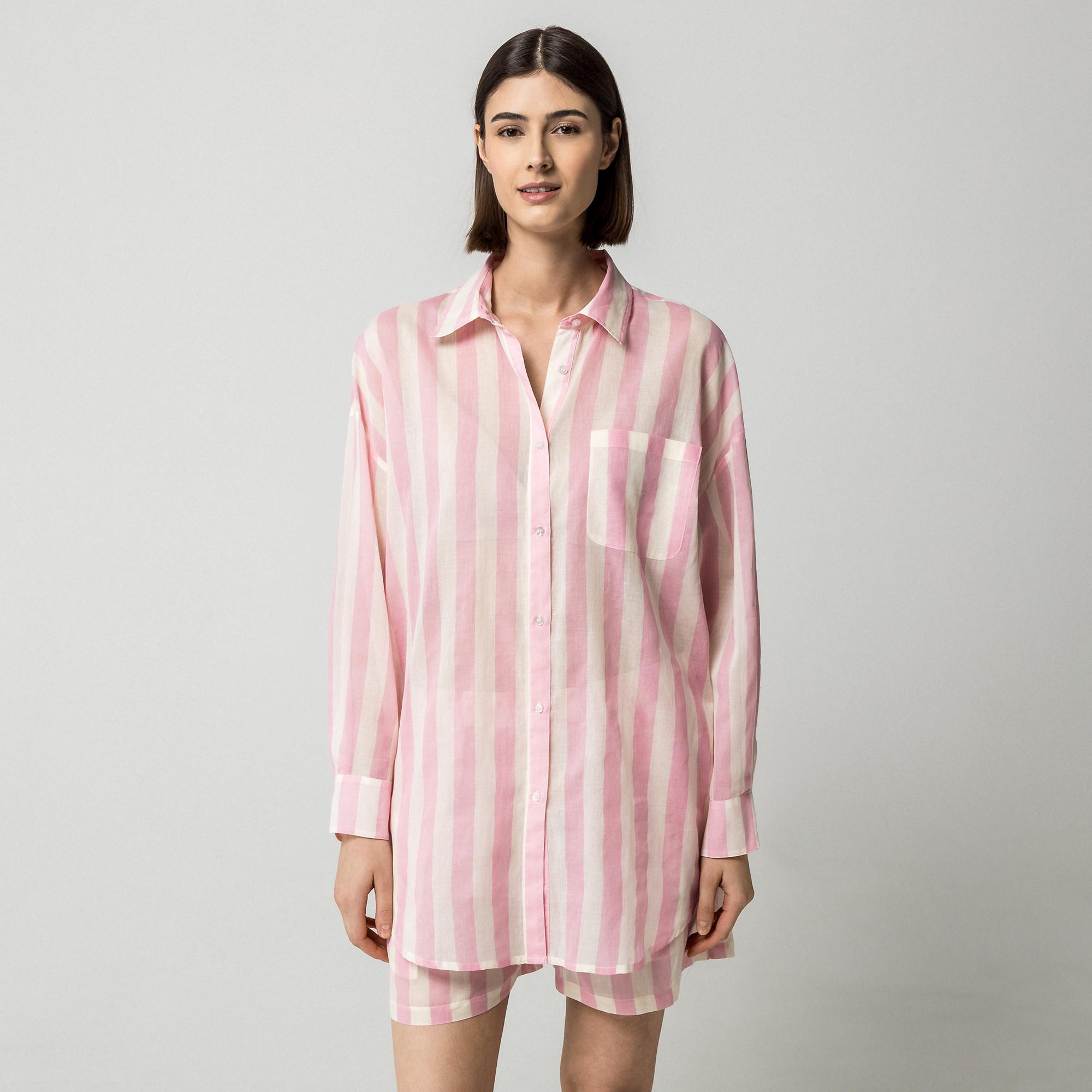 Dieses gestreifte Top- und Shorts-Set bietet einen koordinierten und stilvollen Look. Das Oberteil verfügt über einen klassischen Kragen und lange Ärmel, während die Shorts einen elastischen Bund für Komfort haben. Dieses Set ist ideal, um ein entspanntes und dennoch modisches Ensemble zu kreieren.