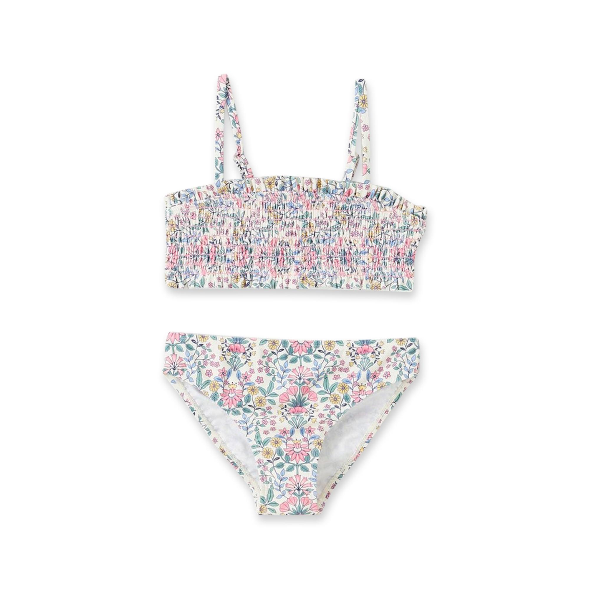 Das Tao Kids Bikini‑Set begeistert mit einem fröhlichen Allover-Blumenprint, der sofort für sommerliche Stimmung sorgt. Das Oberteil ist mit zarten Raffungen versehen, die dem Look eine verspielte und feminine Note verleihen. Die bequeme Passform und das angenehm weiche Material machen den Bikini ideal für Strandtage, Poolbesuche und Wasserabenteuer. Ein farbenfrohes Lieblingsstück für kleine Badenixen.