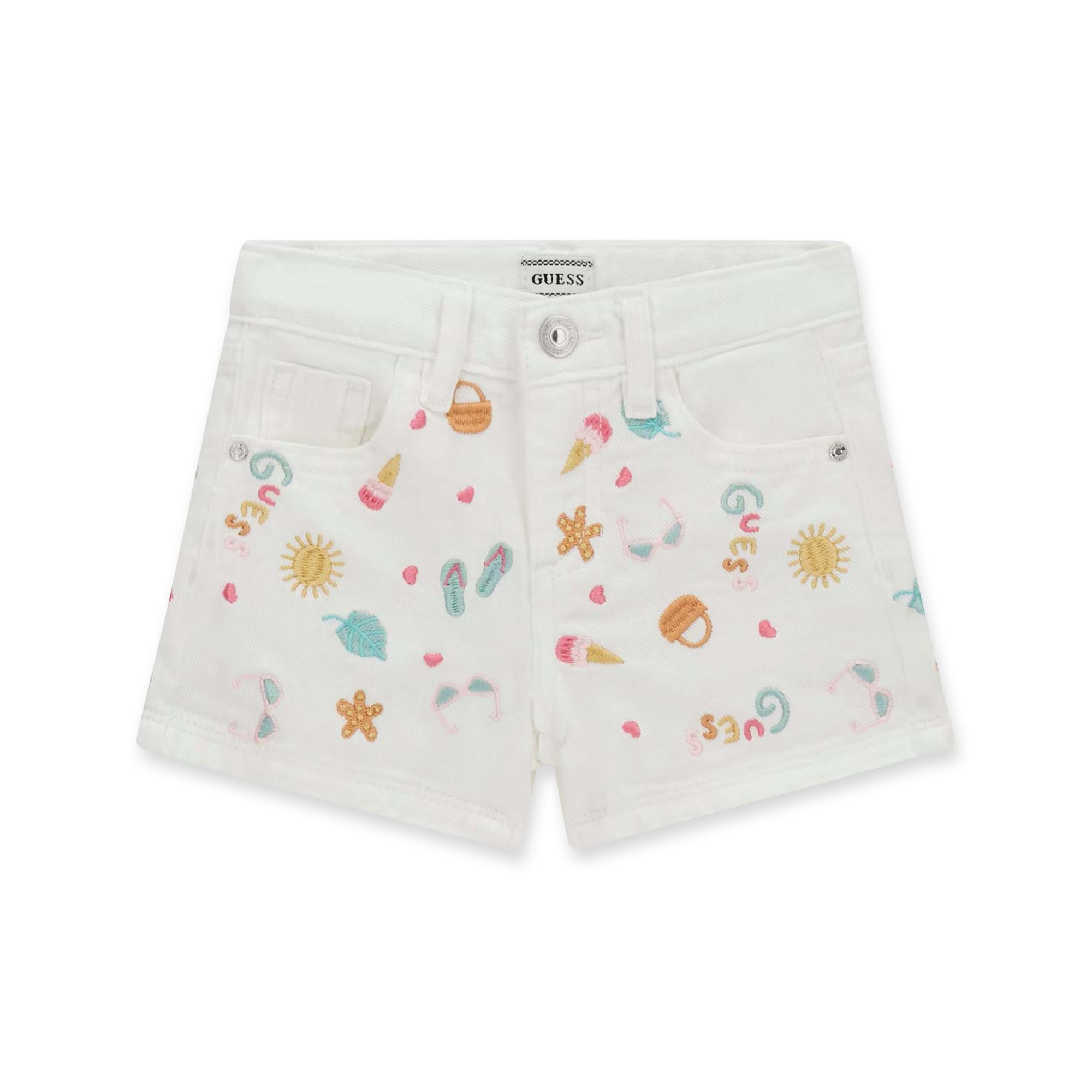 Die Guess Kids Shorts überzeugen mit liebevollen Stickdetails und sommerlichem Look. Das leichte Material bietet angenehmen Tragekomfort an warmen Tagen. Ideal für Alltag, Spielzeit und Ferien.