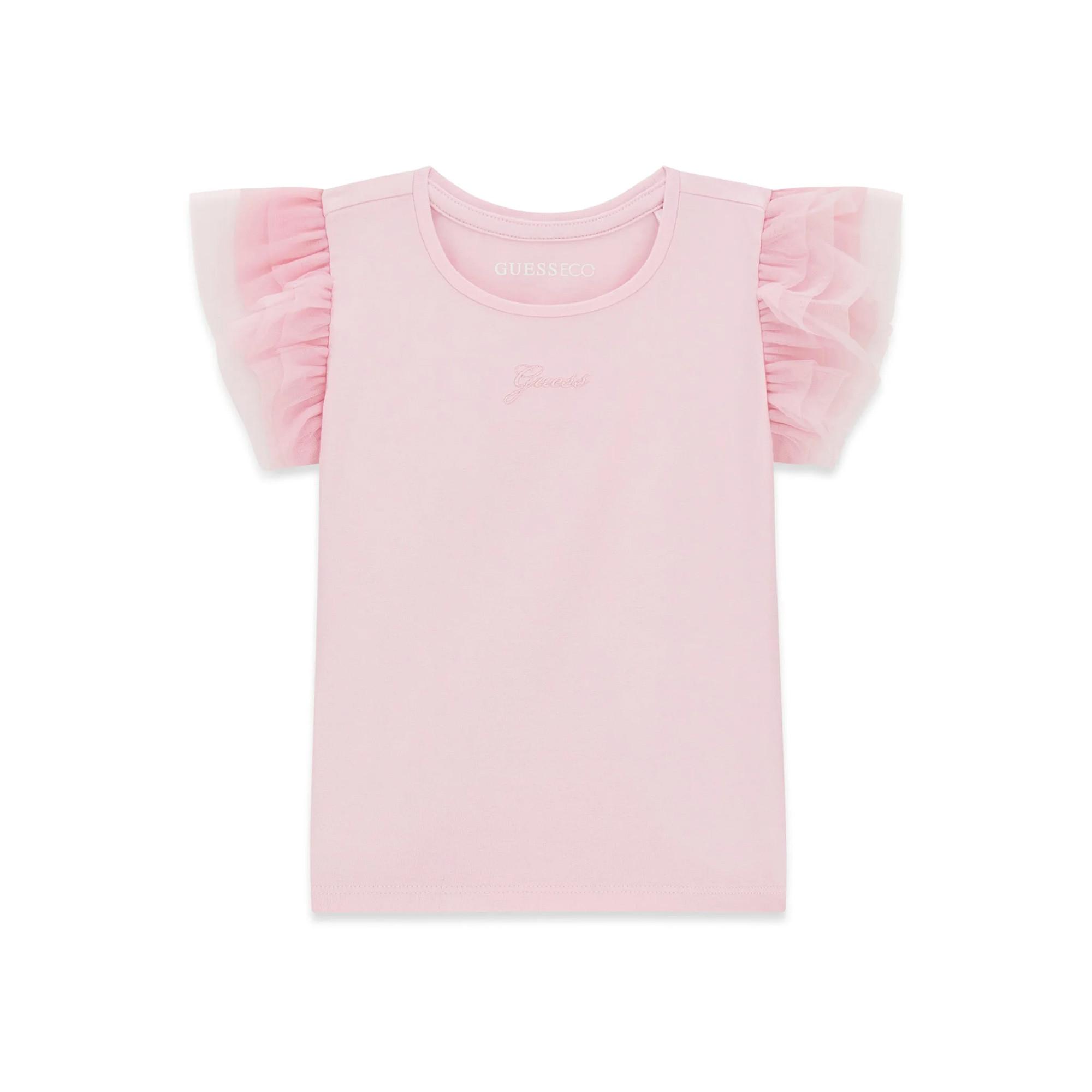 Das Guess Kids T‑Shirt überzeugt mit zarten Tüllärmeln und femininem Design. Der weiche Stoff sorgt für hohen Tragekomfort im Alltag. Ein liebevoller Hingucker für verspielte Sommerlooks.