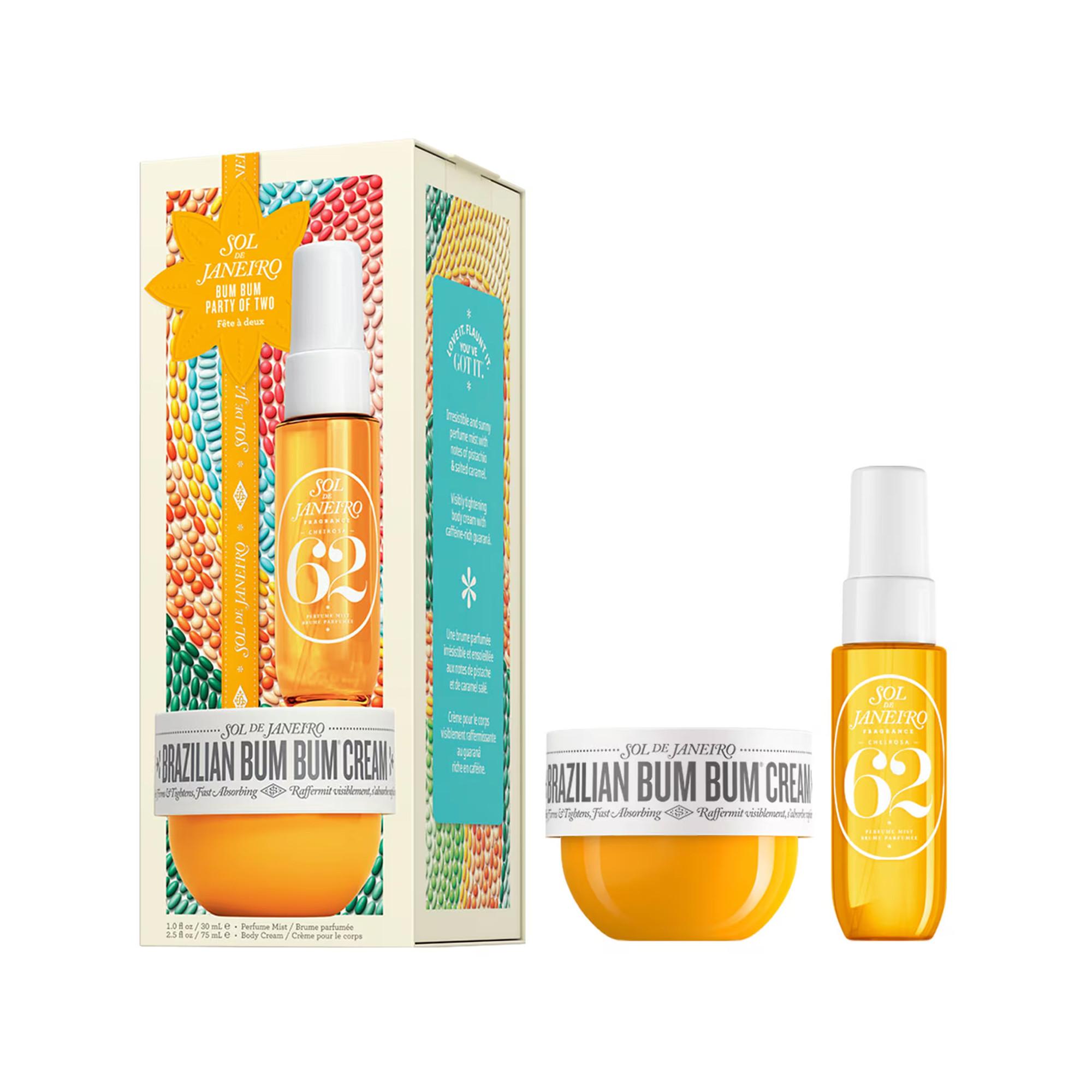 Dieses Set mit zwei pflegenden Bestsellern enthält unsere ikonische Brazilian Bum Bum Creme und das unwiderstehliche Duftspray Cheirosa 62, beide in Reisegrösse.
