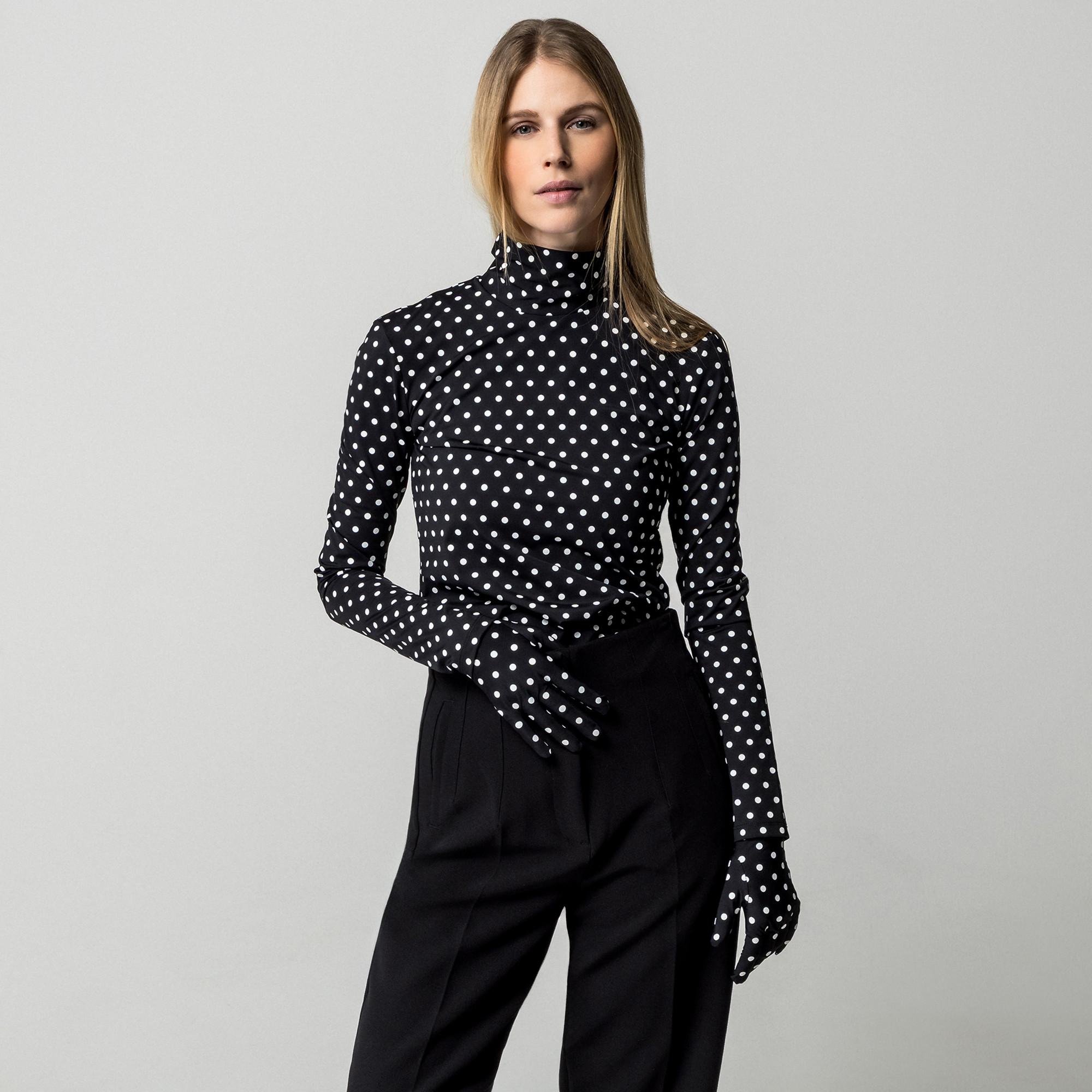 Dieses Langarm-T-Shirt präsentiert sich mit einem klassischen Tupfenmuster und ist eine zeitlose sowie vielseitige Ergänzung für jede Garderobe. Das Design umfasst einen Rollkragen für einen raffinierten Look.
