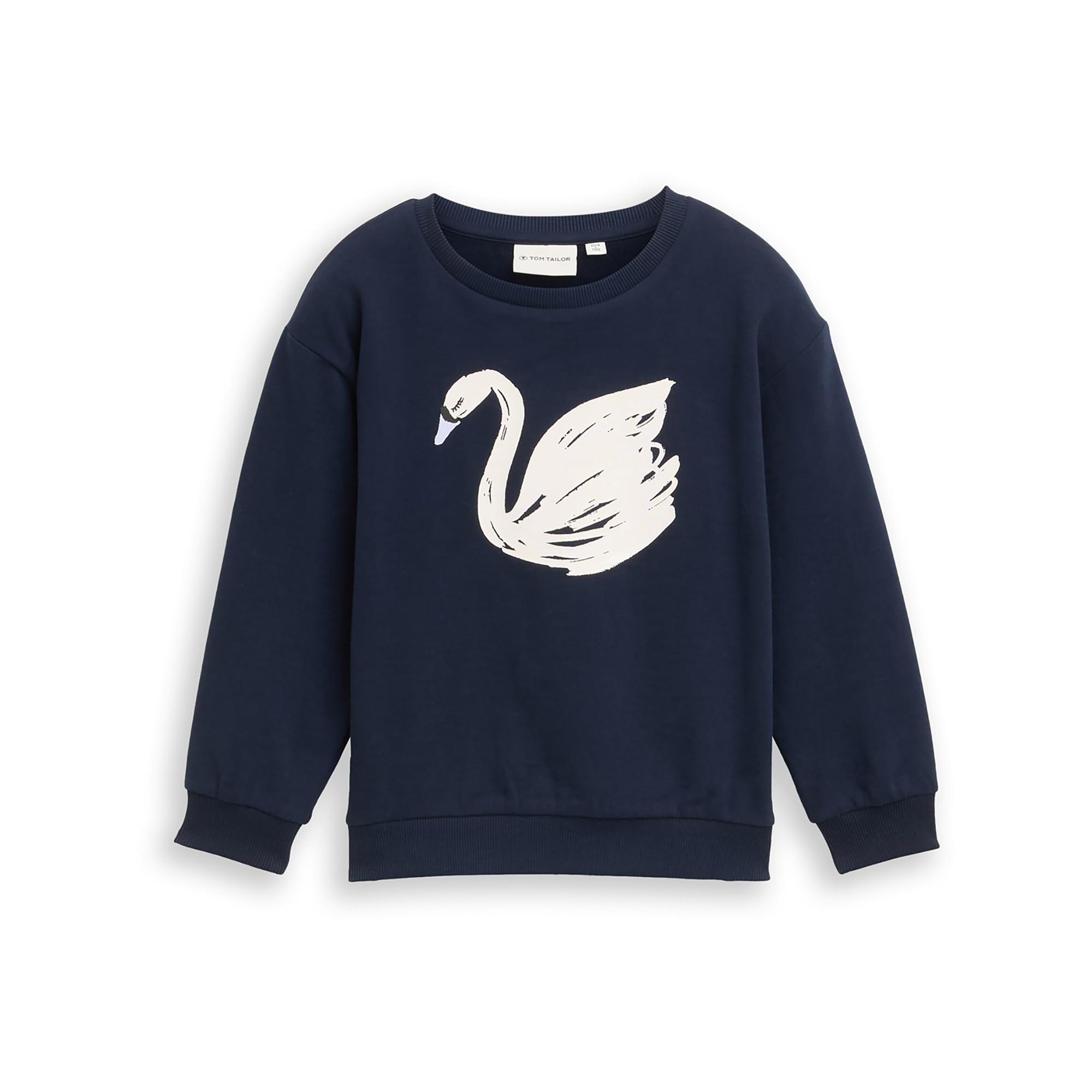 Das Tom Tailor Oversize Sweatshirt für Kinder überzeugt mit seinem lockeren Schnitt und einem glitzernden Schwanenmotiv auf der Vorderseite. Die leicht angeraute Innenseite sorgt für ein warmes und weiches Tragegefühl. Ideal für gemütliche Alltagslooks mit einem Hauch von Glamour.