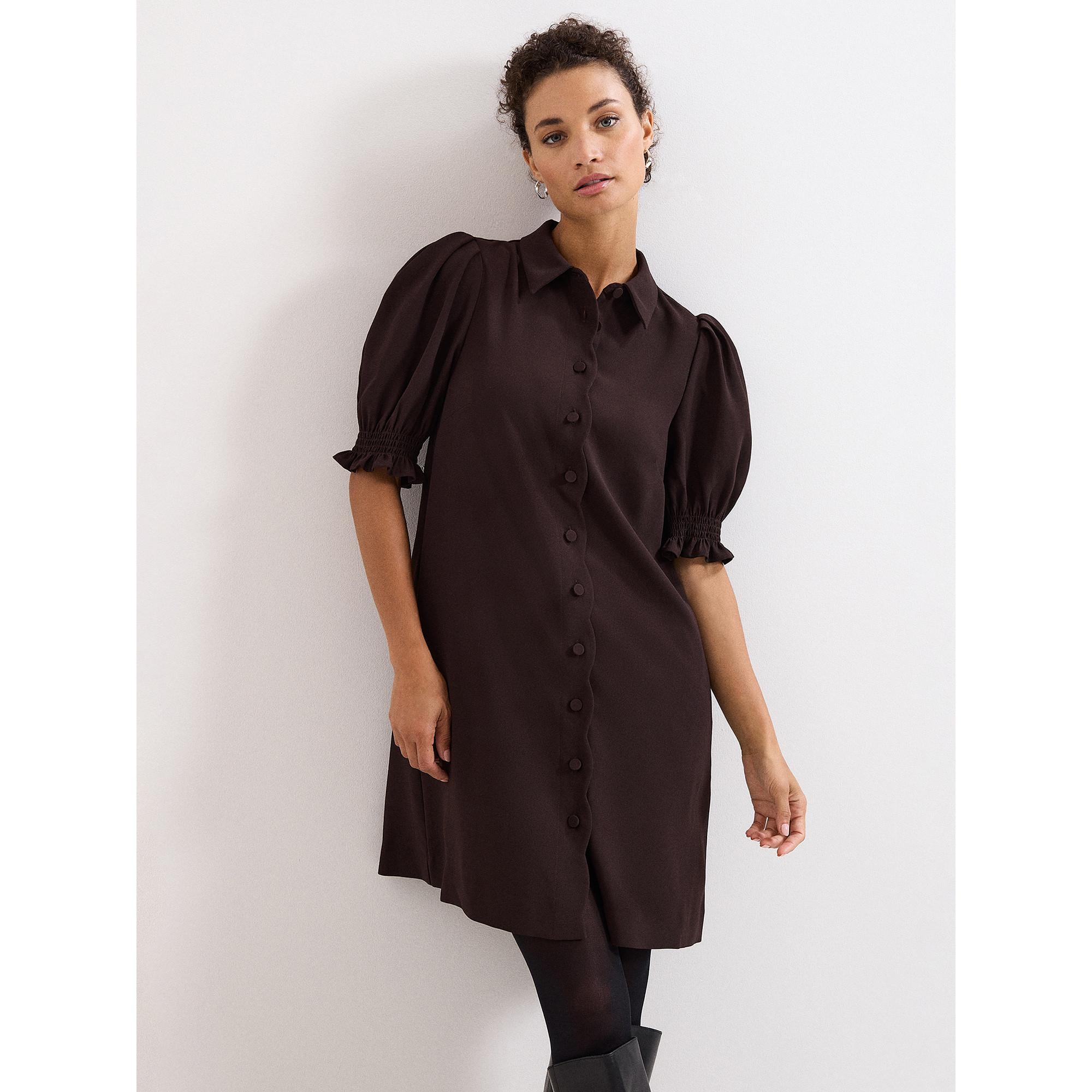 Dieses elegante Kleid verfügt über eine schwingende Silhouette und feminine Puffärmel. Der klassische Kragen lässt sich sowohl geschlossen als auch offen tragen, ideal für stilvolle Alltags- und Wochenend-Looks.