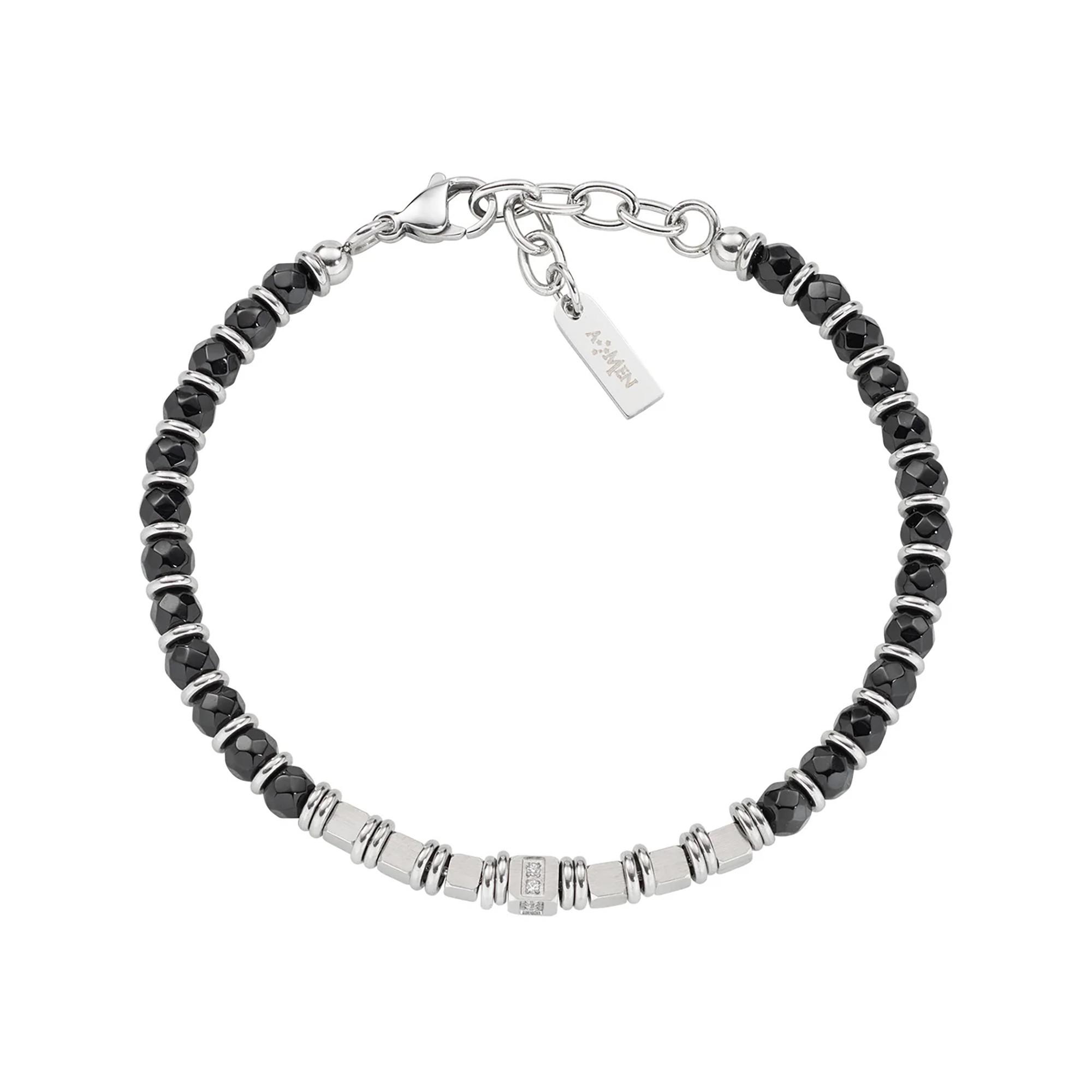 Dieses elegante Herren-Schmuckstueck aus Edelstahl kombiniert schwarzen Onyx und weissen Zirkonia zu einem markanten, modernen Look. Mit seinem coolen Steel-Finish ist es ein langlebiges Accessoire, das jedem Outfit eine edle Note verleiht.