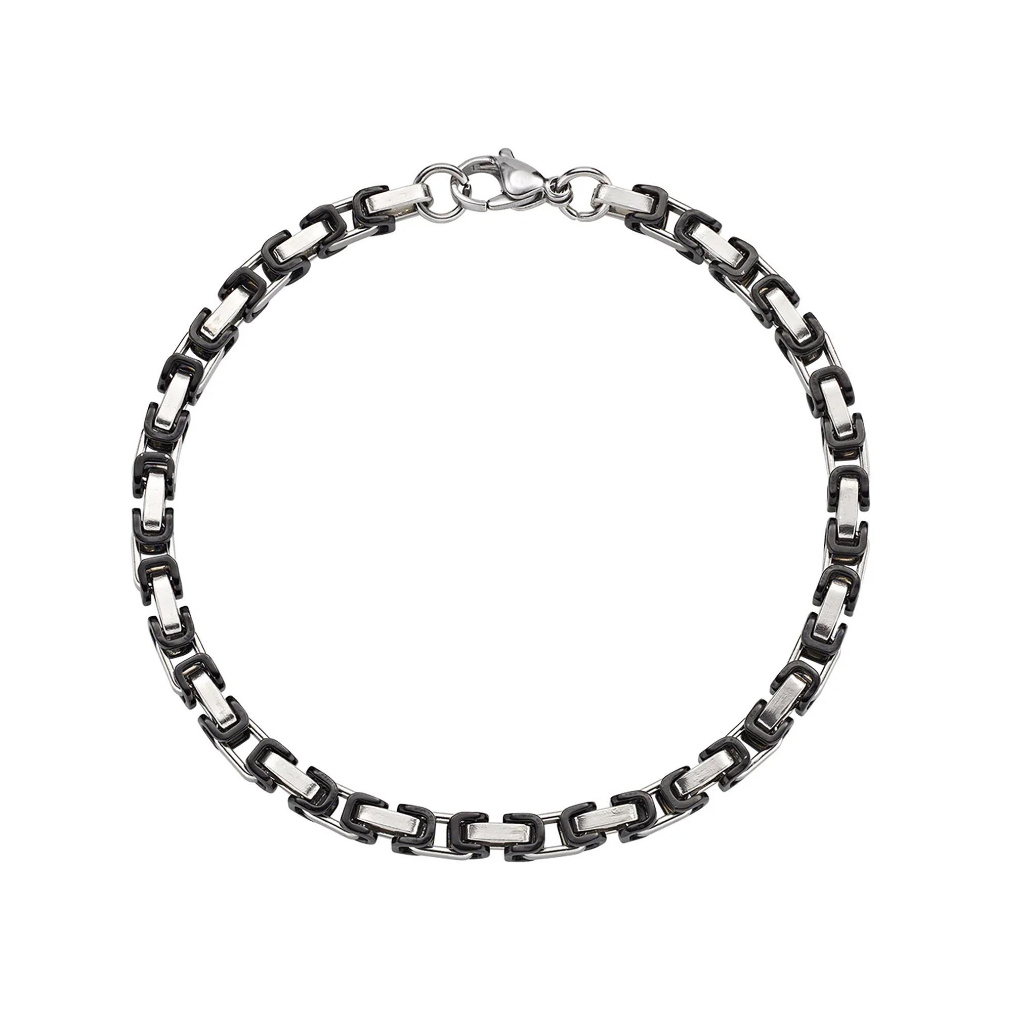 Dieses moderne Herren-Schmuckstueck aus Edelstahl begeistert mit einer Kombination aus Steel- und Black-PVD-Finish. Dank der verstellbaren Laenge von 19 bis 22 cm bietet es einen hohen Tragekomfort und eine markante, maskuline Ausstrahlung.