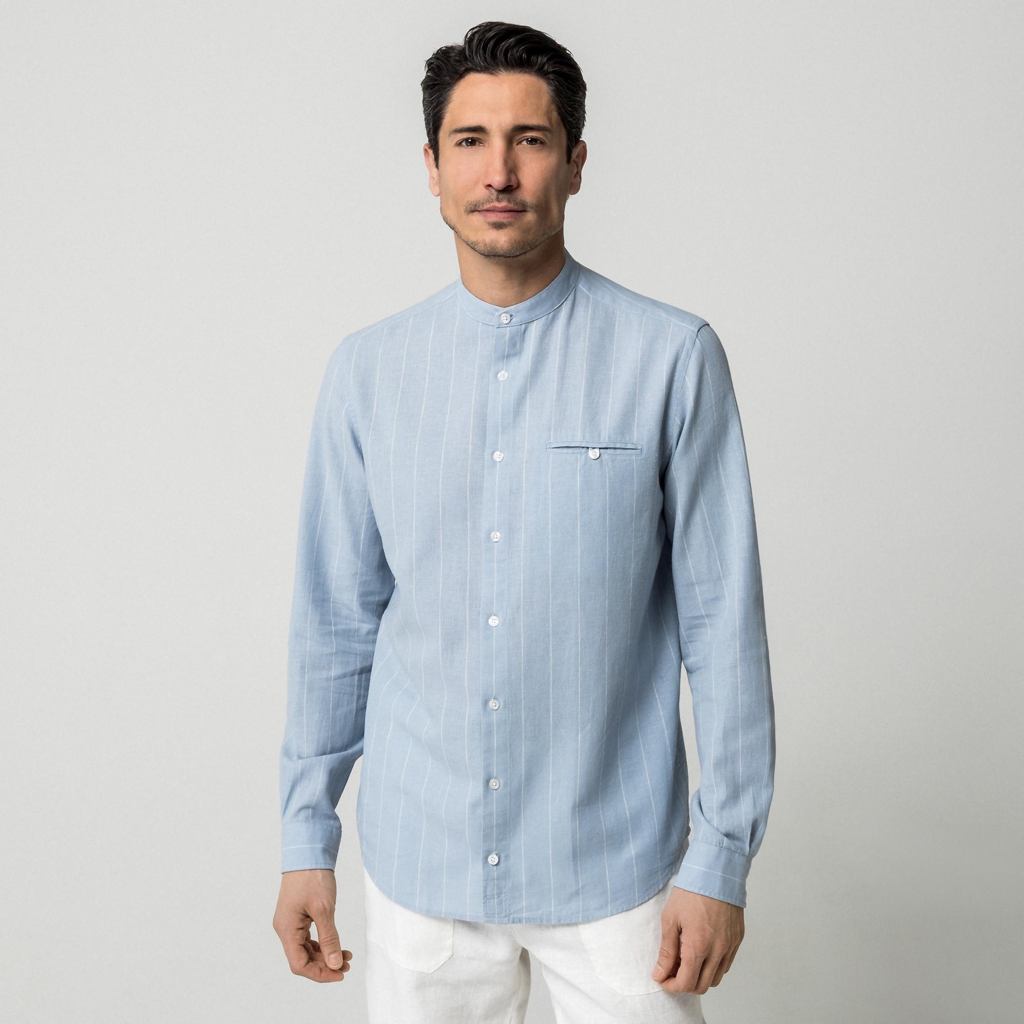 Manor Man Gestreiftes Langarmhemd mit Mandarinkragen