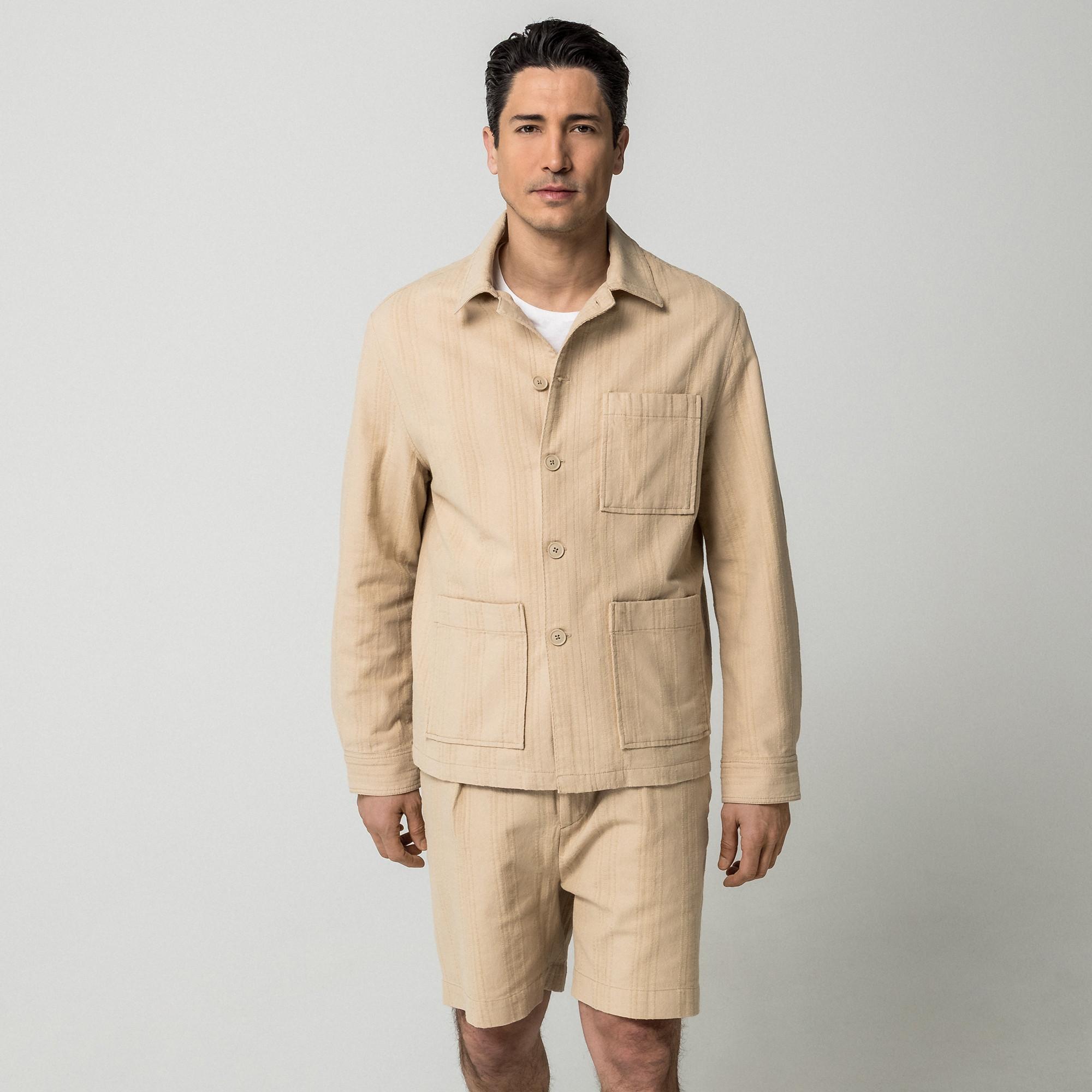 Dieses Overshirt verfügt über einen klassischen Kragen und eine durchgehende Knopfleiste, die eine vielseitige und stilvolle Lagenoption bietet. Das Design umfasst praktische Taschen für alltägliche Utensilien.