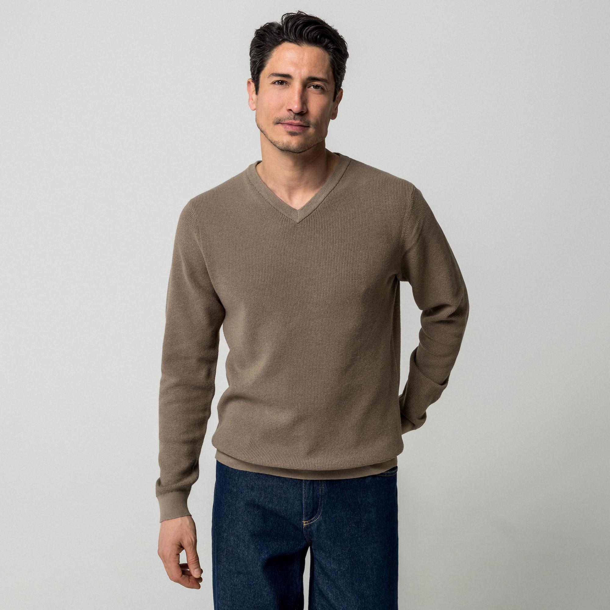 Dieser Pullover mit V-Ausschnitt ist eine vielseitige Ergänzung für jede Garderobe und bietet sowohl Komfort als auch Stil. Sein klassisches Design macht ihn für verschiedene Anlässe geeignet, von Freizeitausflügen bis hin zu eleganteren Veranstaltungen.