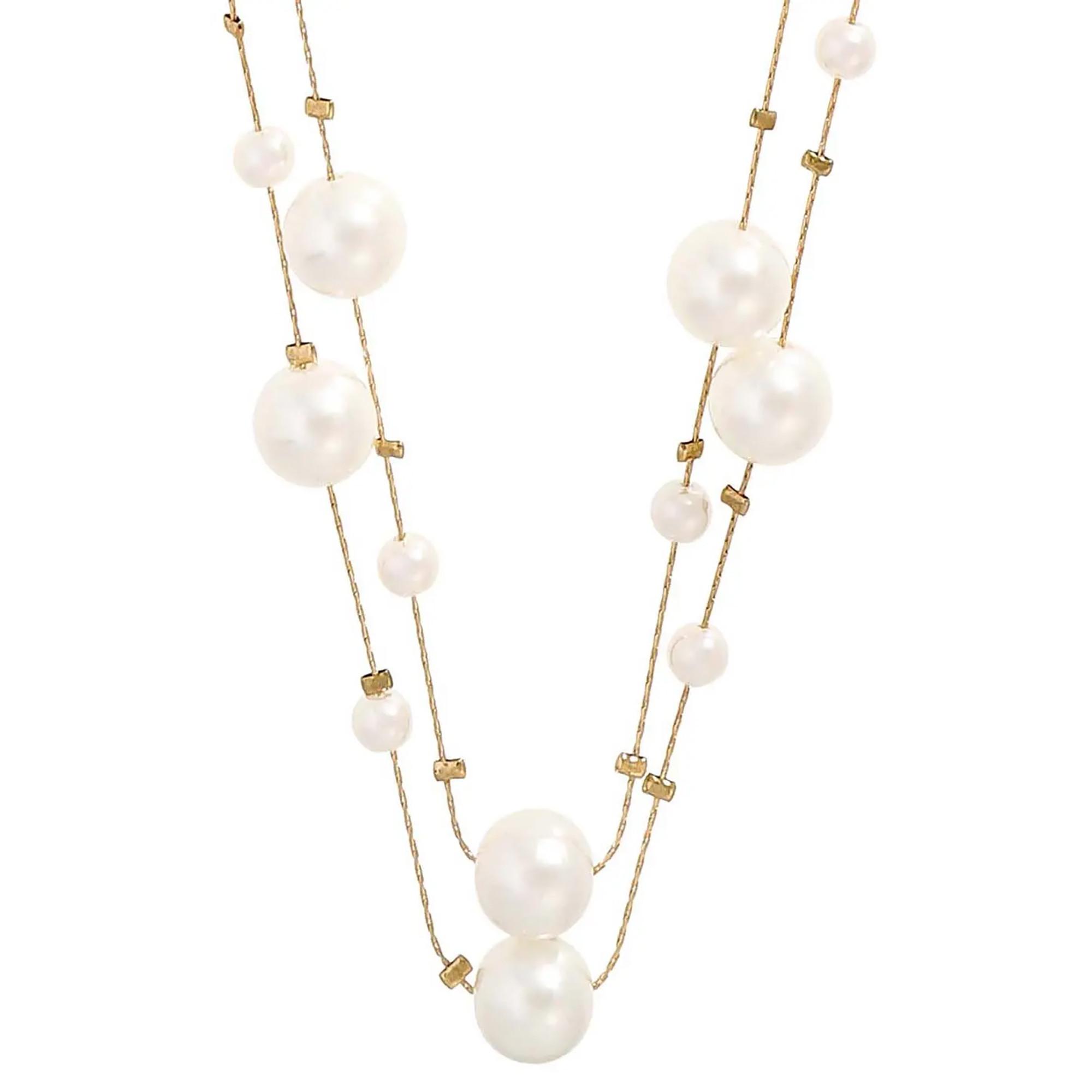 Die Kette - Bright Pearls schimmert goldfarben und ist mit unzähligen, weissen Kunstperlen verziert, welche verschiedene Grössen haben. Die Schlangenkette lässt sich toll mit weiterem Perlenschmuck kombinieren!
