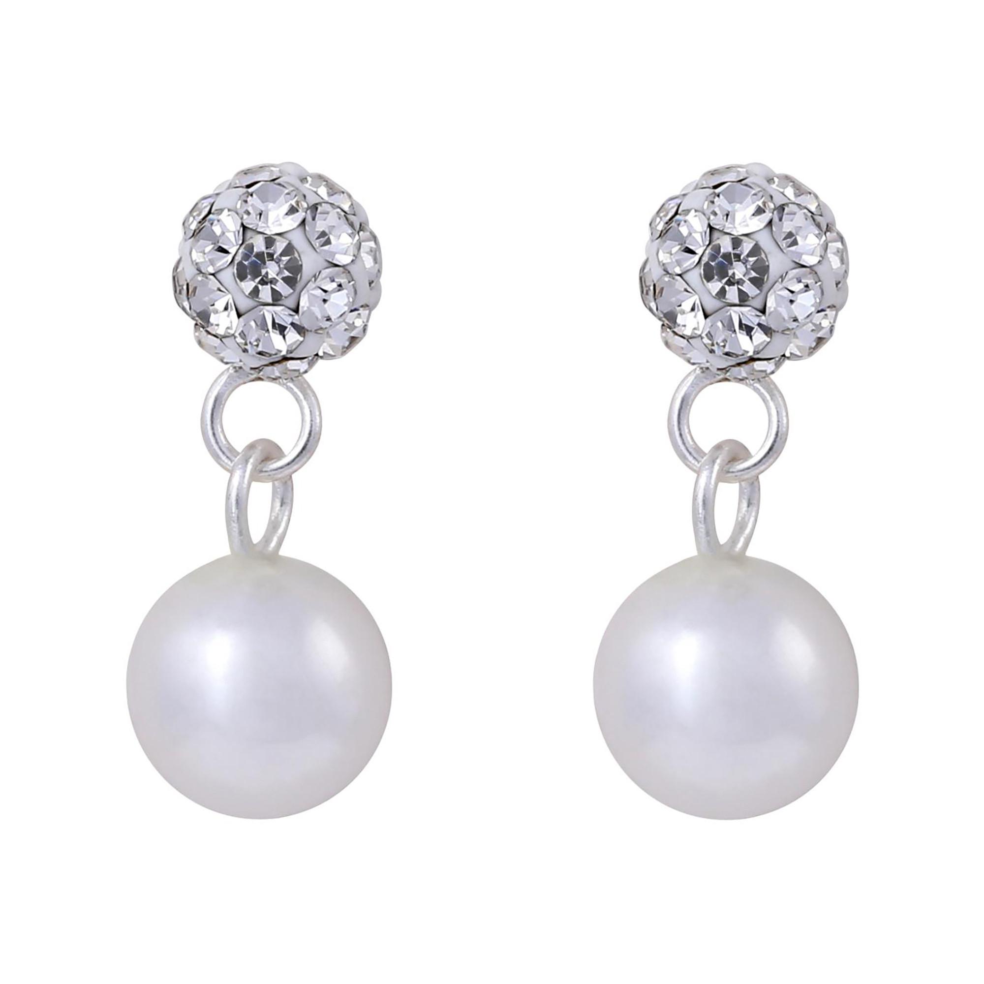 Ein aussergewöhnlich schönes Schmuckstück, das den klassischen Perlen-Look mit einem Hauch Glamour vereint. Der Clou: An den kleinen, mit kristallklaren Strasssteinen besetzten Kügelchen schaukeln weisse, zarte Perlen. Die Ohrstecker sind aus hochwertigem 925er Echtsilber und somit ein zeitloses Schmuckstück, dass zu vielen Anlässen einen edlen Look zaubert.