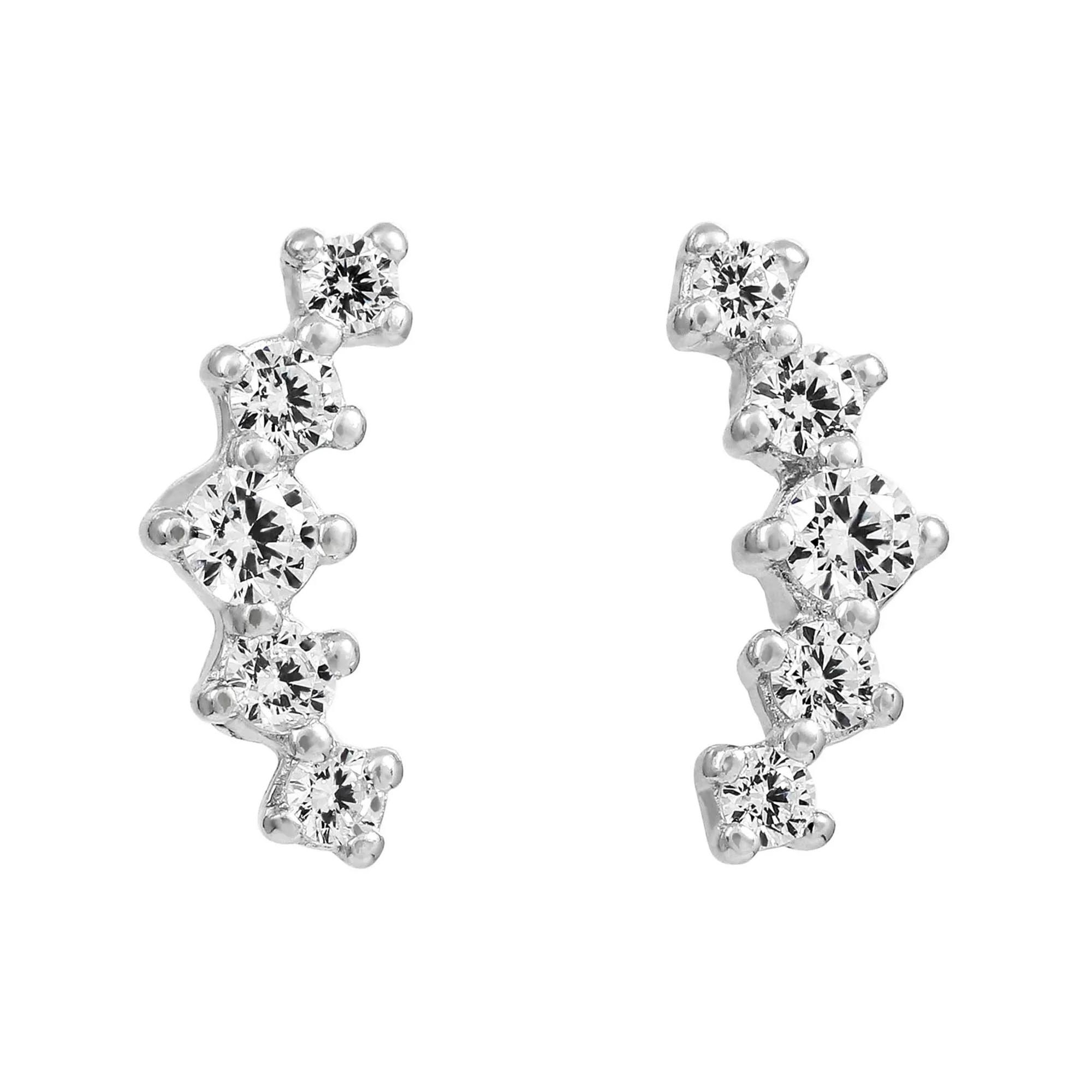 Die Ohrstecker - Sweet Shine schimmern silberfarben und bestehen aus 925er Echtsilber. Beschmückt sind die länglichen, Halbkreis ähnlichen Ohrstecker mit jeweils fünf funkelnden Cubic Zirkonia Steinen, wobei der Stein in der Mitte grösser ist. Die Ohrstecker sind zusätzlich rhodiniert.