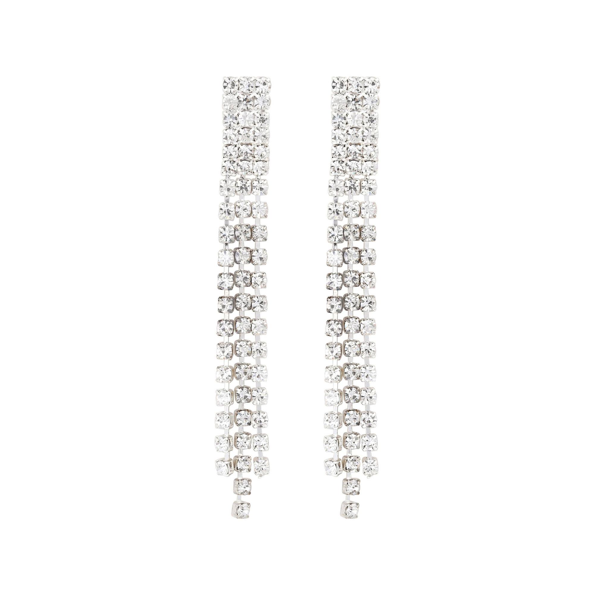 Zauberhafte Ohrstecker, die mit jeweils drei Reihen kristallklarer Strasssteine besetzt sind, welche wie ein Wasserfall wunderschön glitzern und fallen. Ein bildhübsches, funkelndes Highlight zu einem edlen Abendkleid.