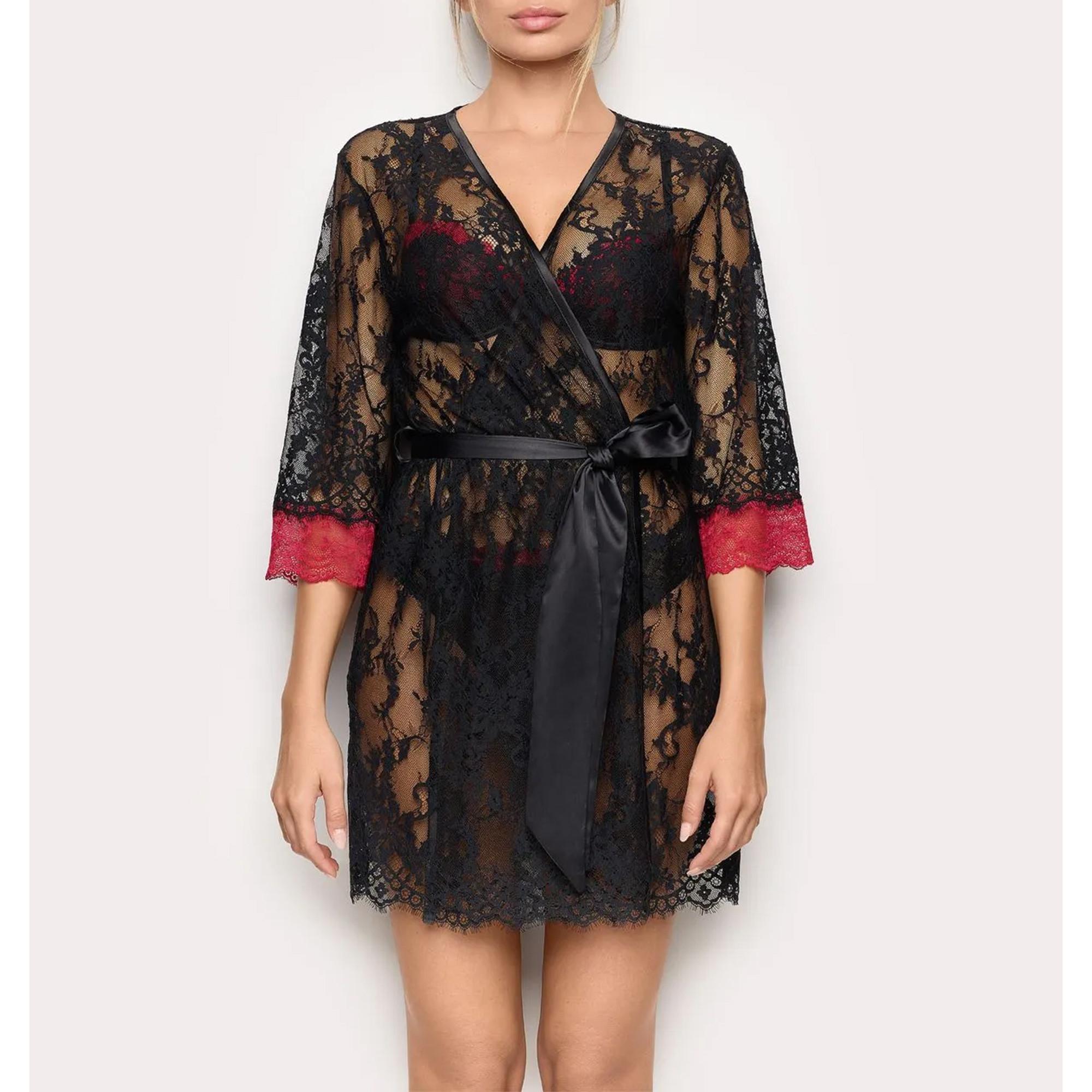 Dieser Kimono ist aus feiner Spitze mit eleganten Satindetails gefertigt. Der Bindegürtel und die leichte Qualität sorgen für angenehmen Komfort. Der romantische Look verleiht dem Modell eine feminine Ausstrahlung.