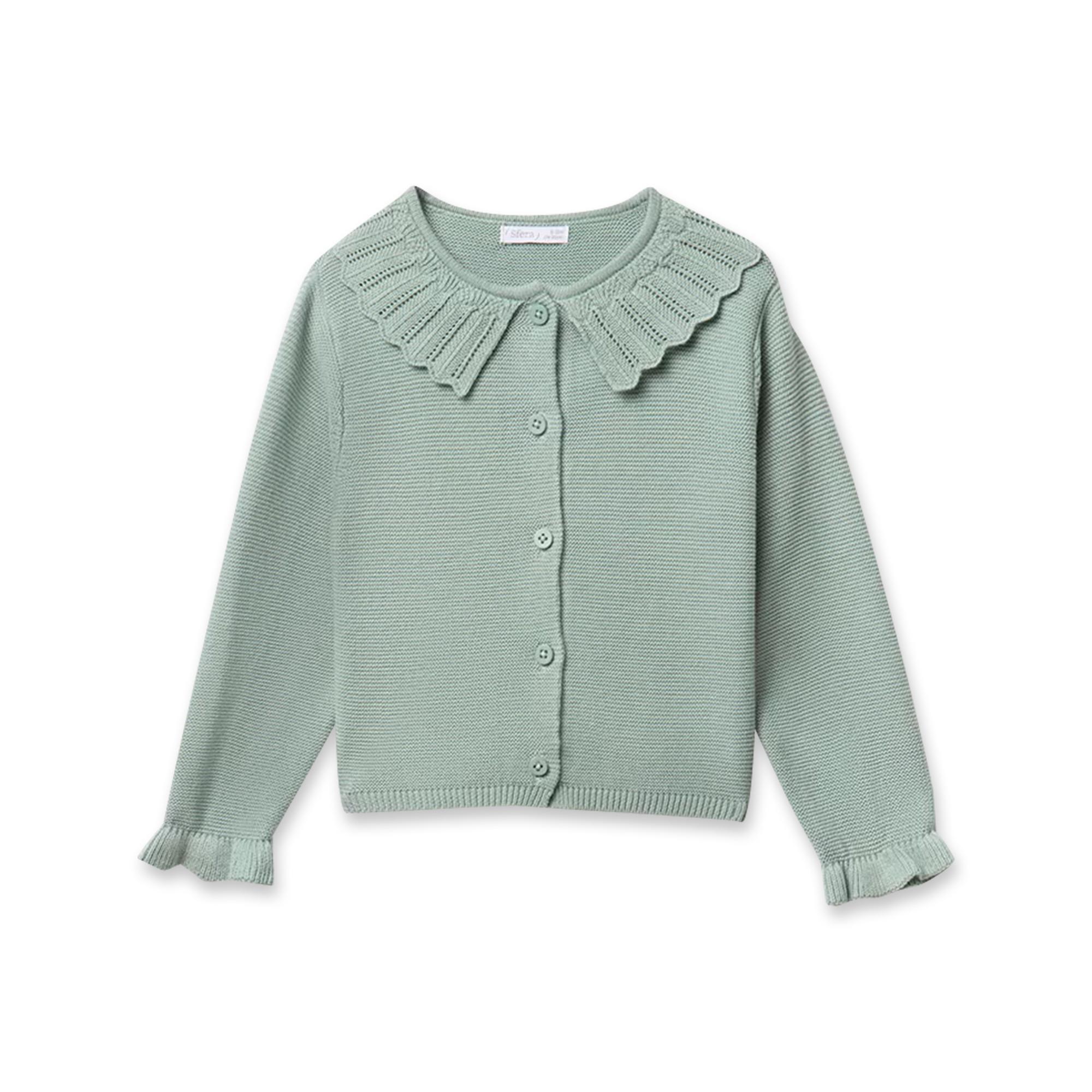 Der Cardigan von Sfera besteht aus 100 % Baumwolle und verfügt über lange Ärmel sowie einen kleinen Rundhalsausschnitt. Ein Volantdetail an den Bündchen und eine durchgehende Knopfleiste runden das Modell ab.