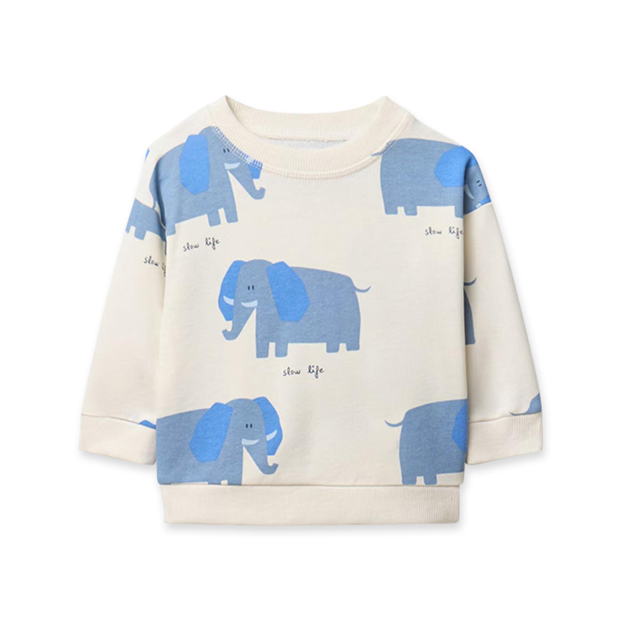 Der Pullover von Sfera verfügt über einen Rundhalsausschnitt und lange Ärmel. Ein Elefanten-Print auf der Vorderseite verleiht dem Modell einen verspielten Look.