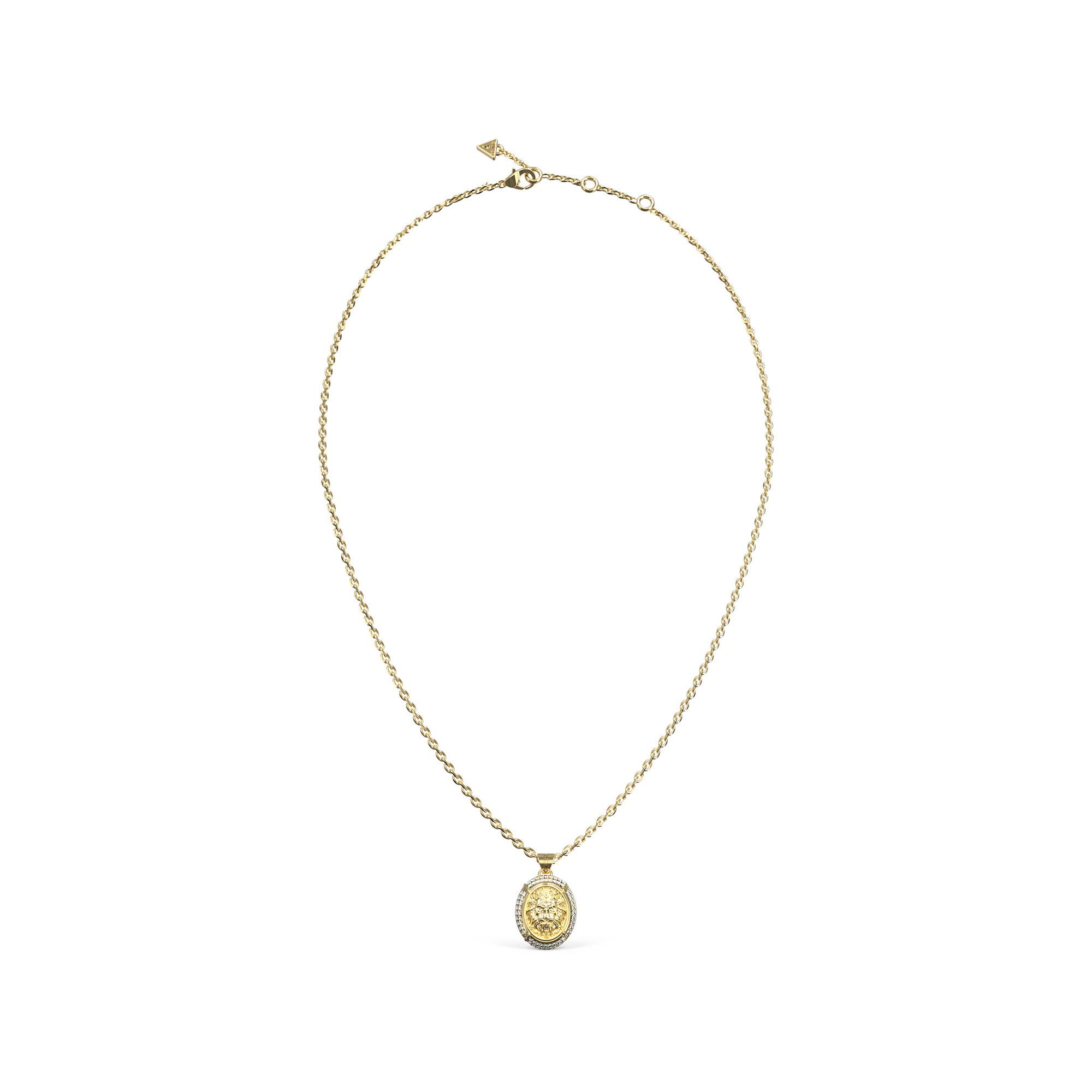 Diese elegante Halskette in goldfarbener Optik überzeugt mit einer feinen Gliederkette und einem dekorativen Medaillon‑Anhänger als stilvollem Blickfang. Funkelnde Cubic‑Zirkonia‑Steine rahmen das runde Motiv ein und verleihen dem Design eine edle, moderne Ausstrahlung. Dank verstellbarer Länge und praktischem Verschluss lässt sich die Kette individuell anpassen und vielseitig kombinieren.