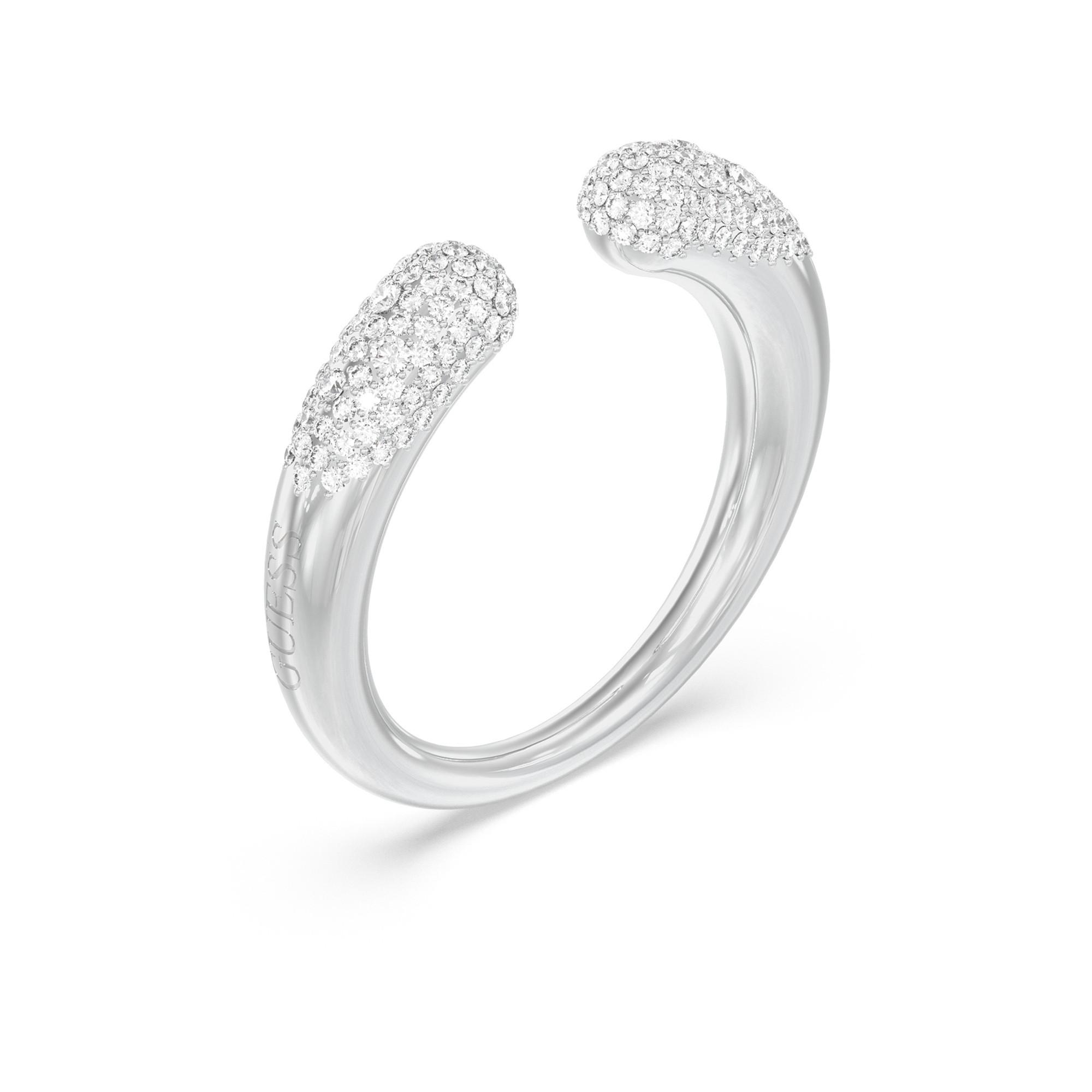Dieser offene Ring in silberfarbener Optik überzeugt mit einer fliessenden Form und zwei funkelnden Enden als stilvoller Blickfang. Die pavé‑artig gefassten Cubic‑Zirkonia‑Steine verleihen dem Design eine elegante Brillanz und unterstreichen den modernen Charakter. Ein ausdrucksstarkes Schmuckstück, das sich angenehm tragen lässt und jedem Look eine raffinierte Note verleiht.