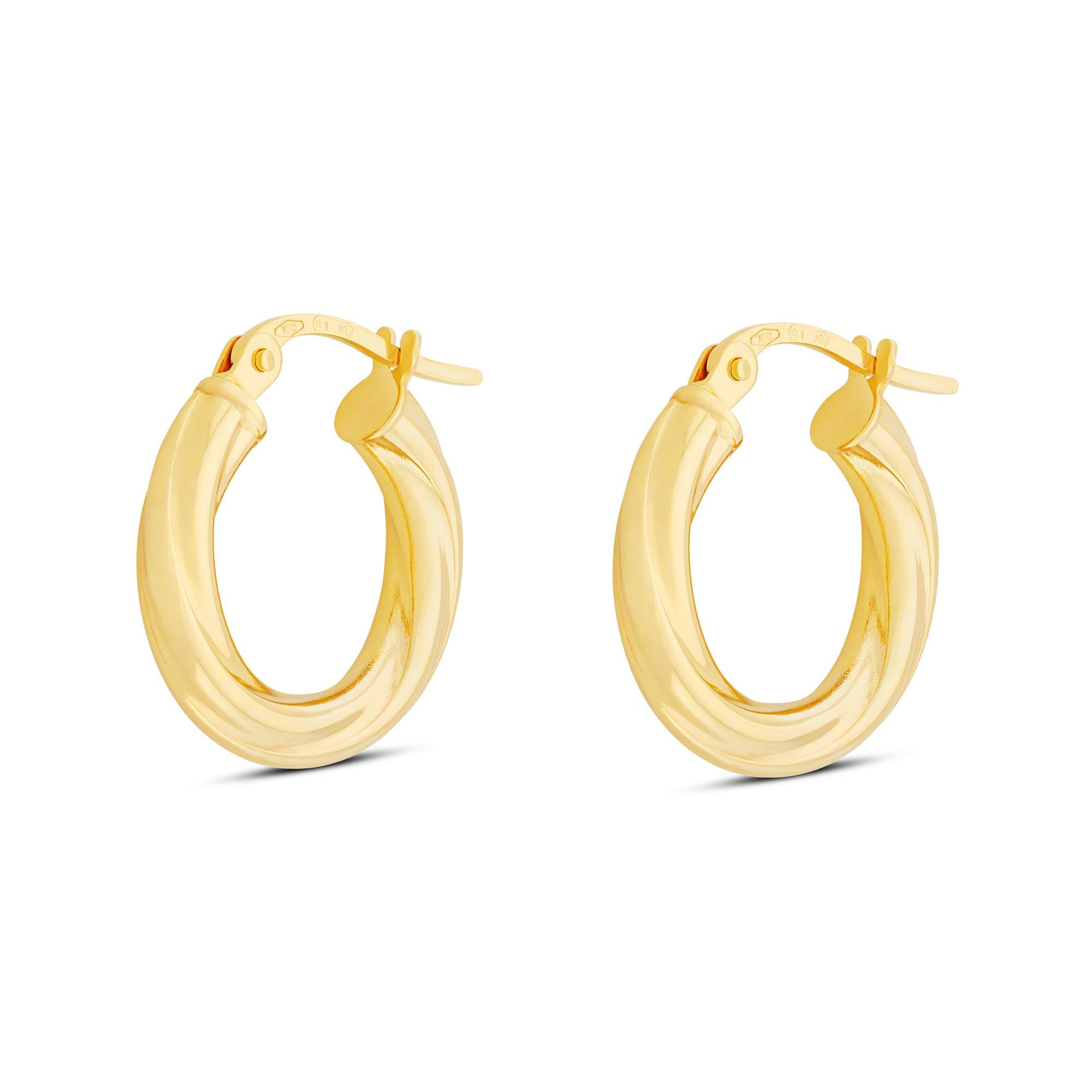 Diese Creolen von L'Atelier Gold 18 Karat by Manor sind mit einzigartig gedrehtem Design und klassischem französischem Verschluss perfekte Alltagsohrringe mit charakterstarker Ausstrahlung.