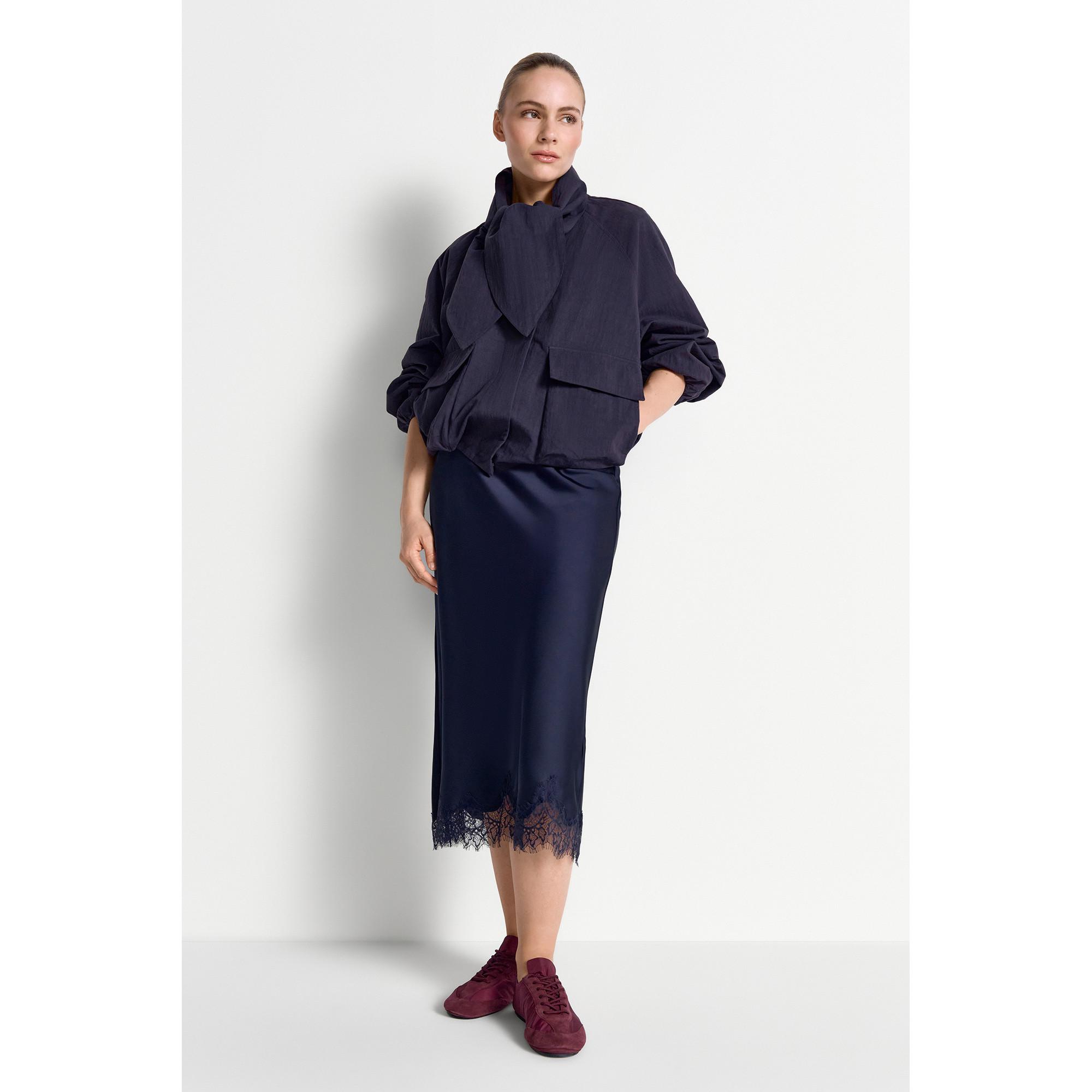 Diese Jacke zeichnet sich durch eine entspannte Passform und ein stilvolles Design aus, was sie zu einer vielseitigen Ergänzung für jede Garderobe macht. Der durchgehende Reissverschluss und der Druckknopfverschluss sorgen für einen sicheren Halt, während der elastische Saum und die Bündchen einen bequemen Sitz gewährleisten.