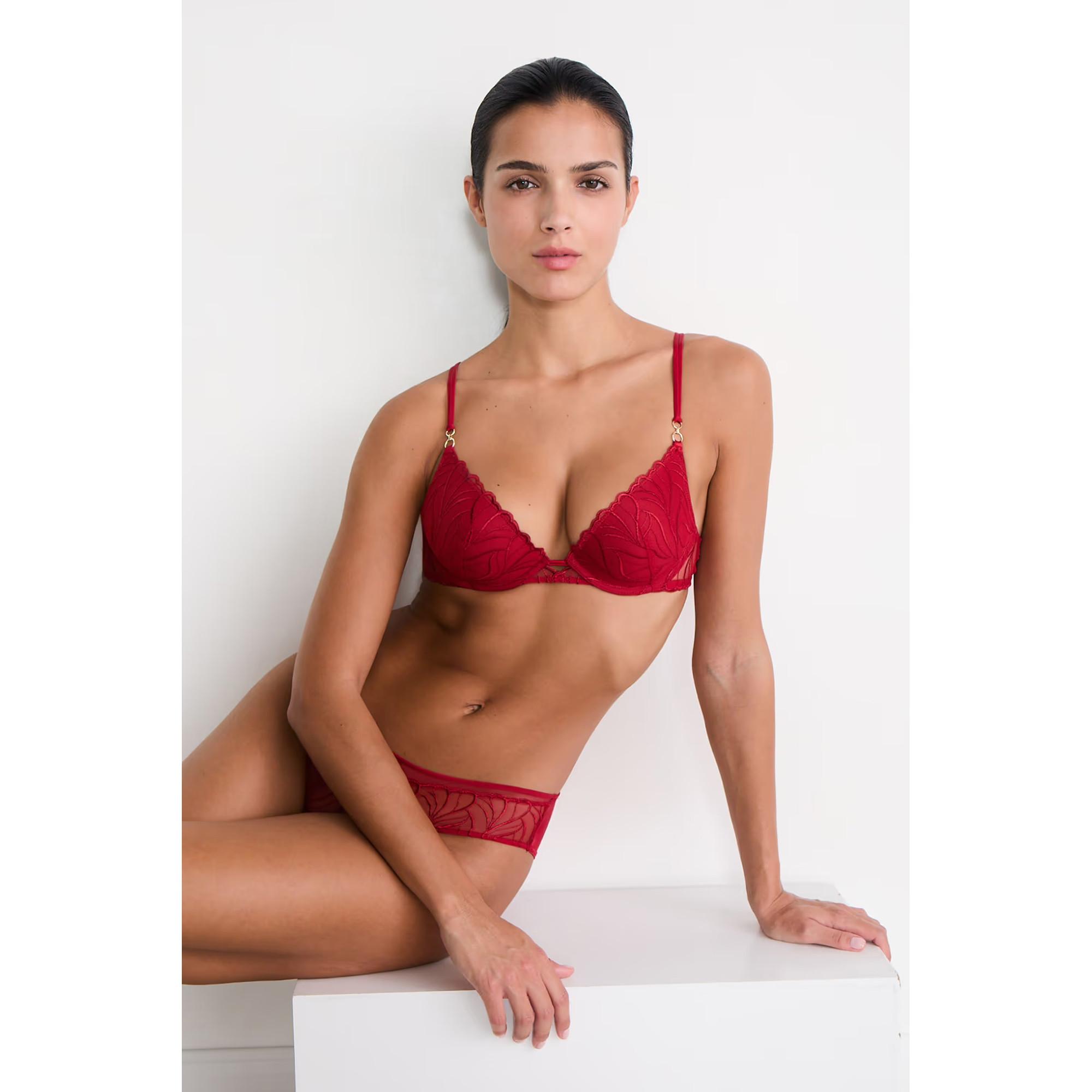 Dieser Push-Up BH verfügt über zarte Spitze mit einem aufwendigen Blattmuster, was einen raffinierten und femininen Look bietet. Das Design umfasst verstellbare Träger und einen Haken-Ösen-Verschluss für einen bequemen und sicheren Sitz.